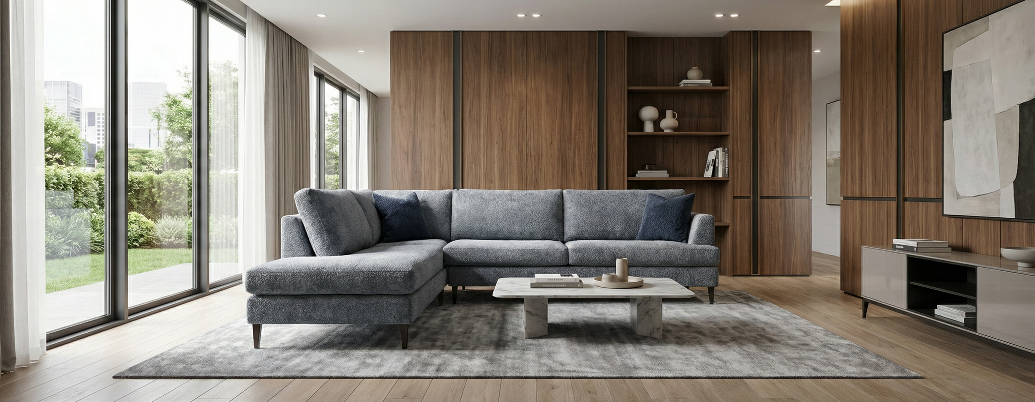 Un canapé sectionnel LHF ou RHF composé d'une chaise longue et d'un canapé à 1 accoudoir avec revêtement en tissu élégant, matériau anti-éclaboussures et anti-taches (sauf motif Monet), cadre en bois massif (tout vissé et collé), construction à ressorts sans affaissement, pont autoportant. Inclus avec 4 coussins d'appoint et un coussin pour les reins (rembourré de duvet). Dimensions : L130" x P70" x H34" (Veuillez consulter les 70 motifs personnalisés et les détails des variations de couleurs sur notre site Web)