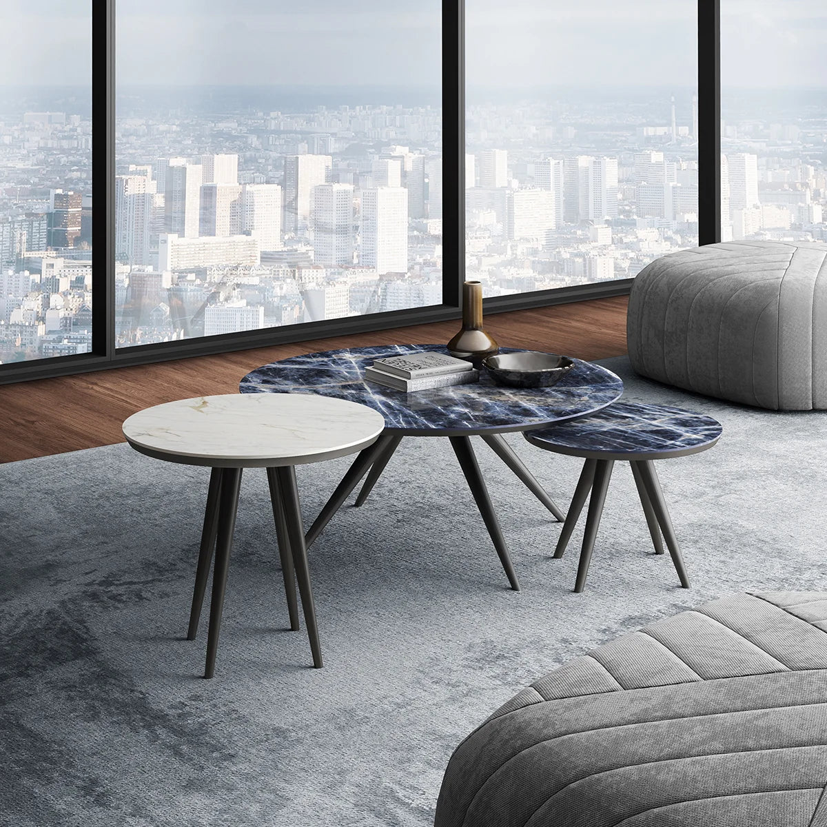 La table d'appoint Francesca S est dotée d'un plateau en céramique brillante bleu sodalite et de pieds en hêtre massif. Avec des dimensions de 20" x 15", cette table basse chic et contemporaine révolutionnera l'apparence de votre salon et deviendra le point central de votre maison.