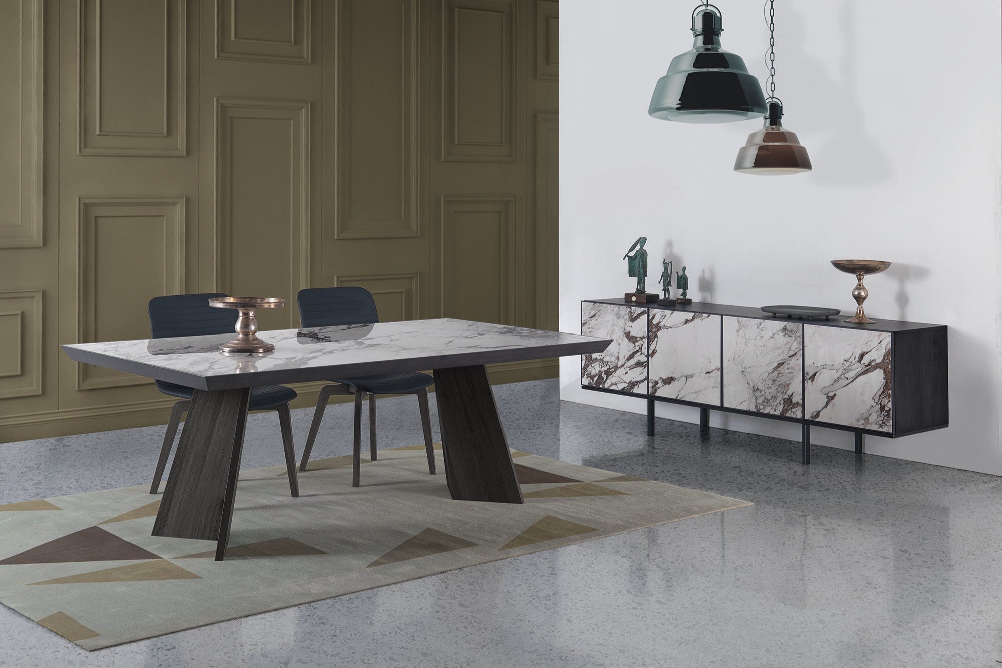 The ceramic surface brings a smooth, refined look that elevates everyday dining while remaining practical for regular use. Beneath the top, the solid base provides stability and structure while making the table feel like a functional work of modern design. Ideal for contemporary interiors, the Materia Dining Table anchors your dining space with confidence, style, and a sense of modern sophistication.