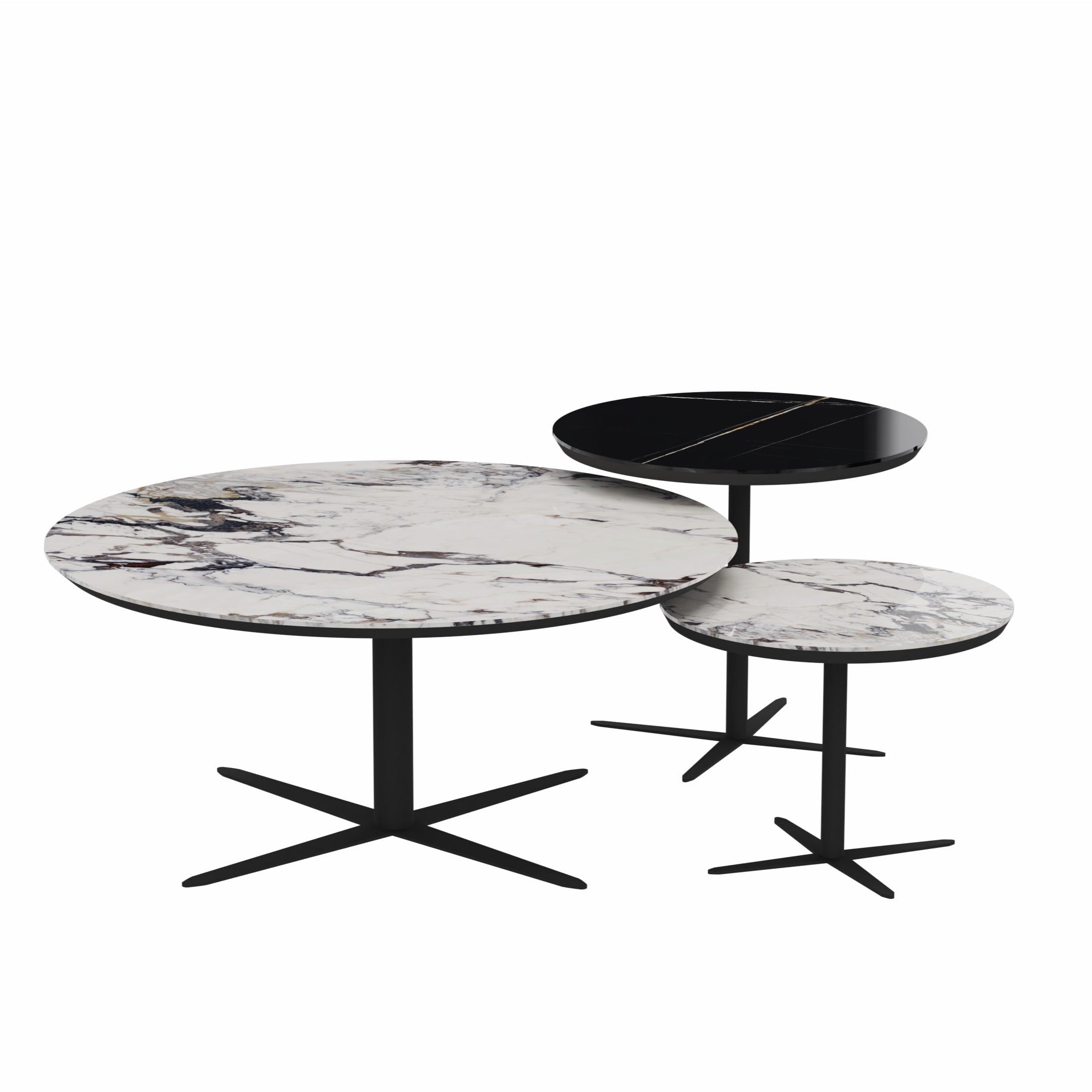 La table d'appoint Mobi L est dotée d'un plateau en céramique brillante de couleur Sahara Noir avec des pieds en métal, mesurant 23" x 20" de diamètre. Chic et sophistiquée, elle est fabriquée à la main par nos designers italiens uniques et créatifs. Cette table basse éblouissante allie élégance classique et polyvalence quotidienne, apportant une touche luxueuse à votre salon.