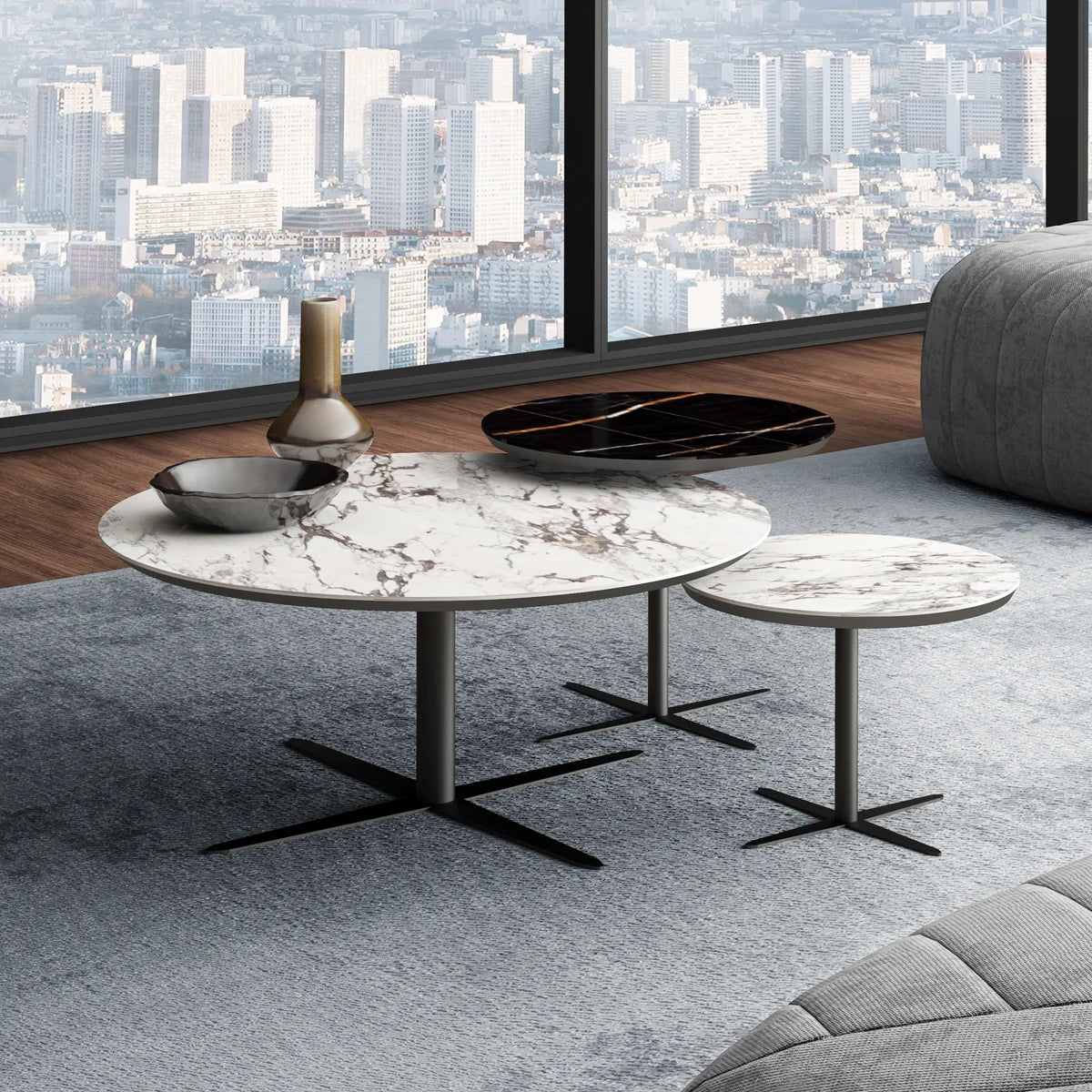 La table d'appoint Mobi S est dotée d'un plateau en céramique brillante de couleur Capraia avec des pieds en métal, mesurant 20" x 15" de diamètre. Chic et sophistiquée, elle est fabriquée à la main par nos designers italiens uniques et créatifs. Cette table basse éblouissante allie élégance classique et polyvalence au quotidien, apportant une touche luxueuse à votre salon.