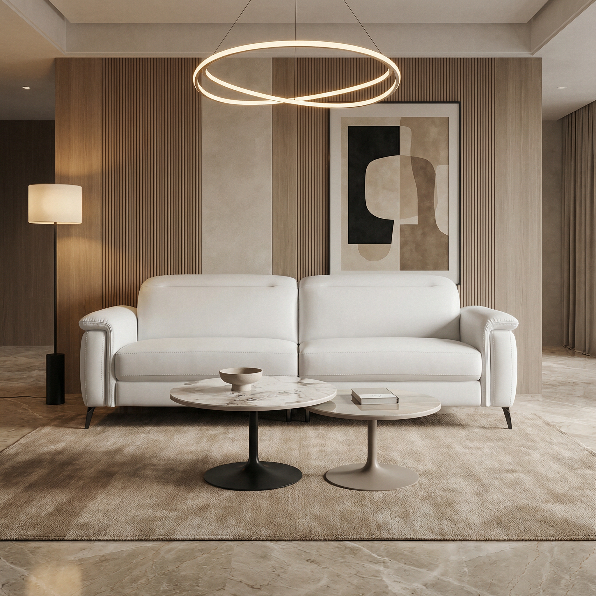Designed with two power recliners and power headrests, it provides ultimate comfort at your fingertips that's perfect for unwinding after a long day. The sofa’s slim profile, clean stitched seats, and sleek metal legs create a contemporary yet timeless presence that stands out without overpowering.