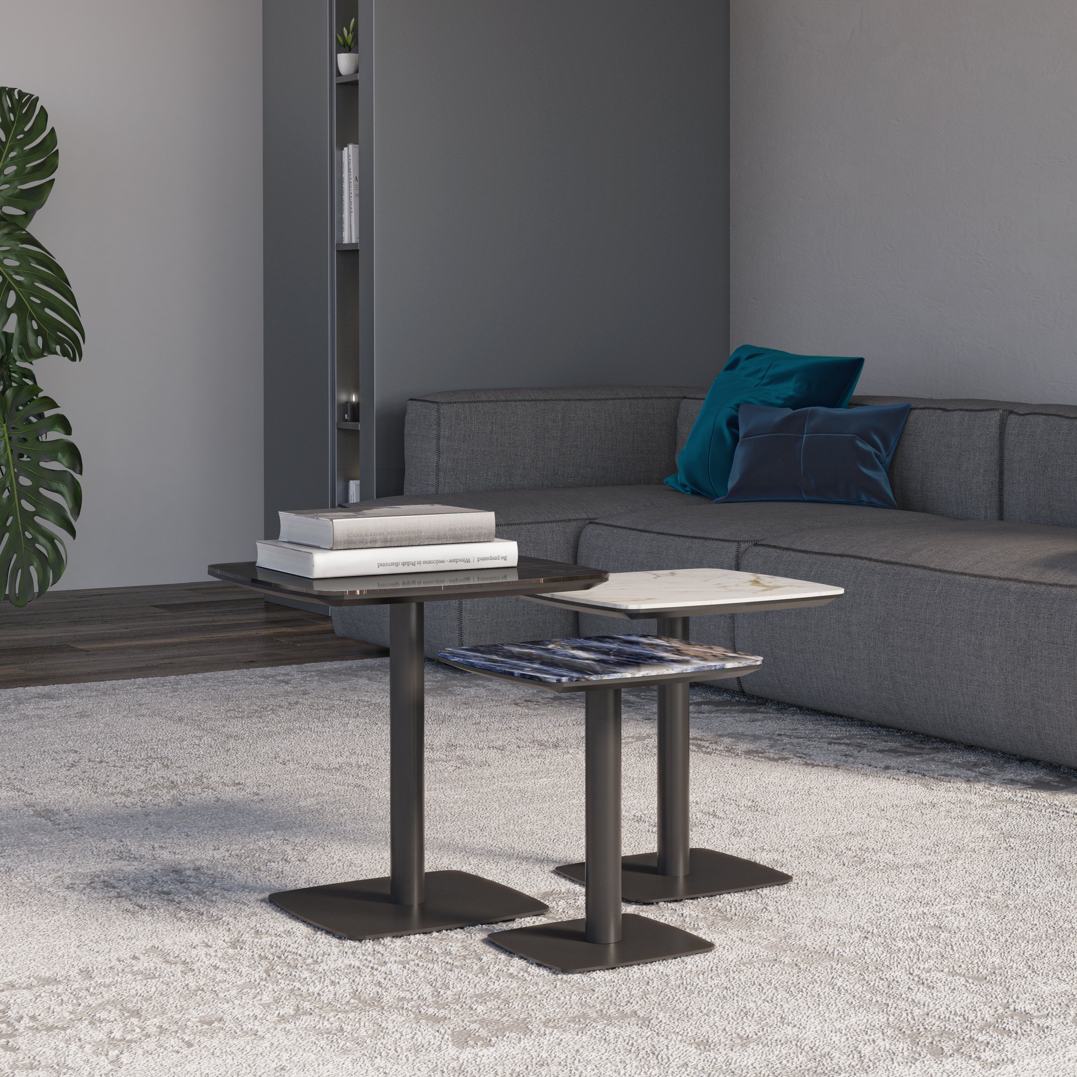 The Reach Square End Table combines clean geometry with refined material options to create a standout accent for any modern interior. Its compact ceramic top (17" x 17" or 20" x 20") is available in Golden White, Sahara Noir, and Sodalite Blue, while the base can be customized in either Black or Champagne to achieve the aesthetic you prefer.