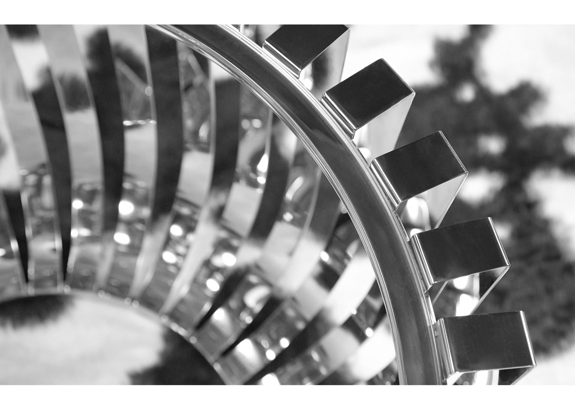 Des rubans élégants en acier inoxydable poli servent de cadre à la magnifique table basse élégante Roza.