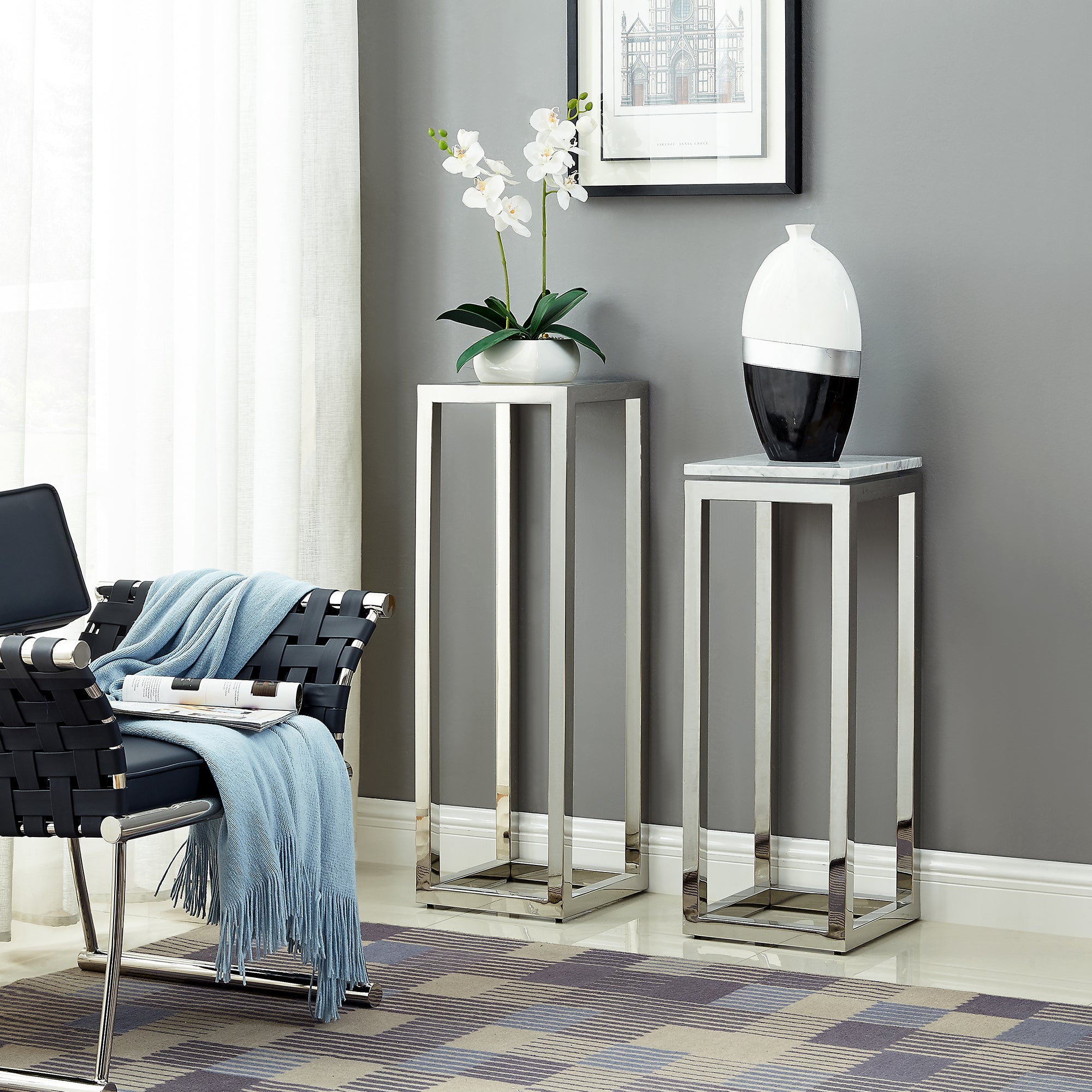 Socle d'affichage à clous 31" en acier inoxydable poli : Une table d'appoint très simple mais unique avec une finition en acier inoxydable poli.