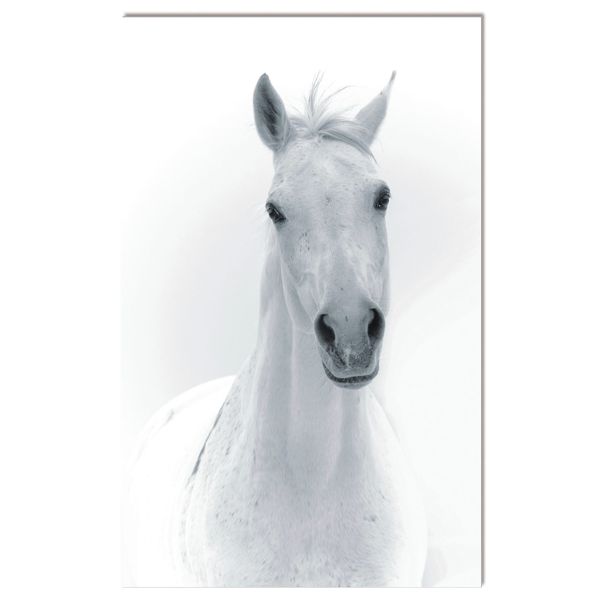 Ritratto acrilico di un cavallo bianco isolato su sfondo bianco, dimensioni 48 x 30 pollici.