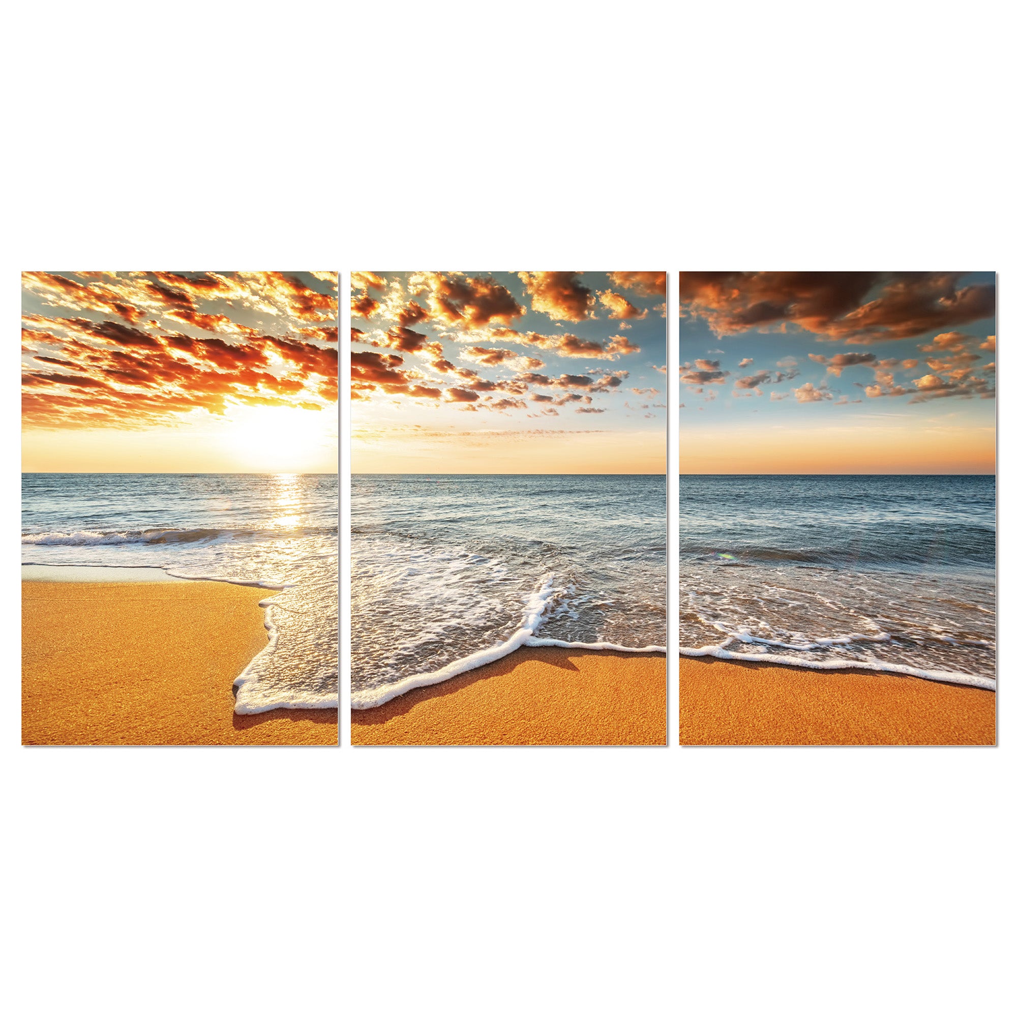 Questo pannello acrilico composto da 3 pezzi raffigurante una calda spiaggia sabbiosa cattura magnificamente l'atmosfera serena e invitante di un paradiso costiero.