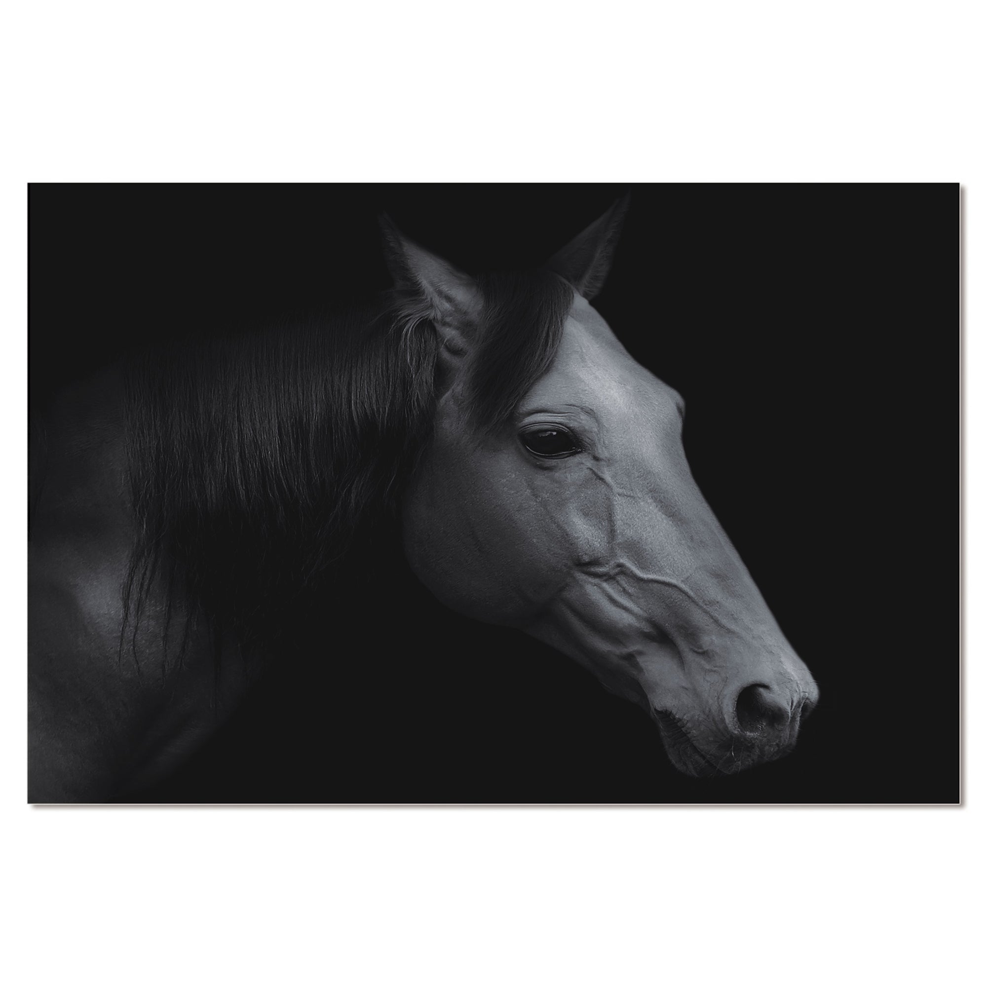 Ritratto in acrilico di un cavallo nero russo 60 x 40. Ritratto in acrilico di un cavallo nero russo isolato su sfondo nero.