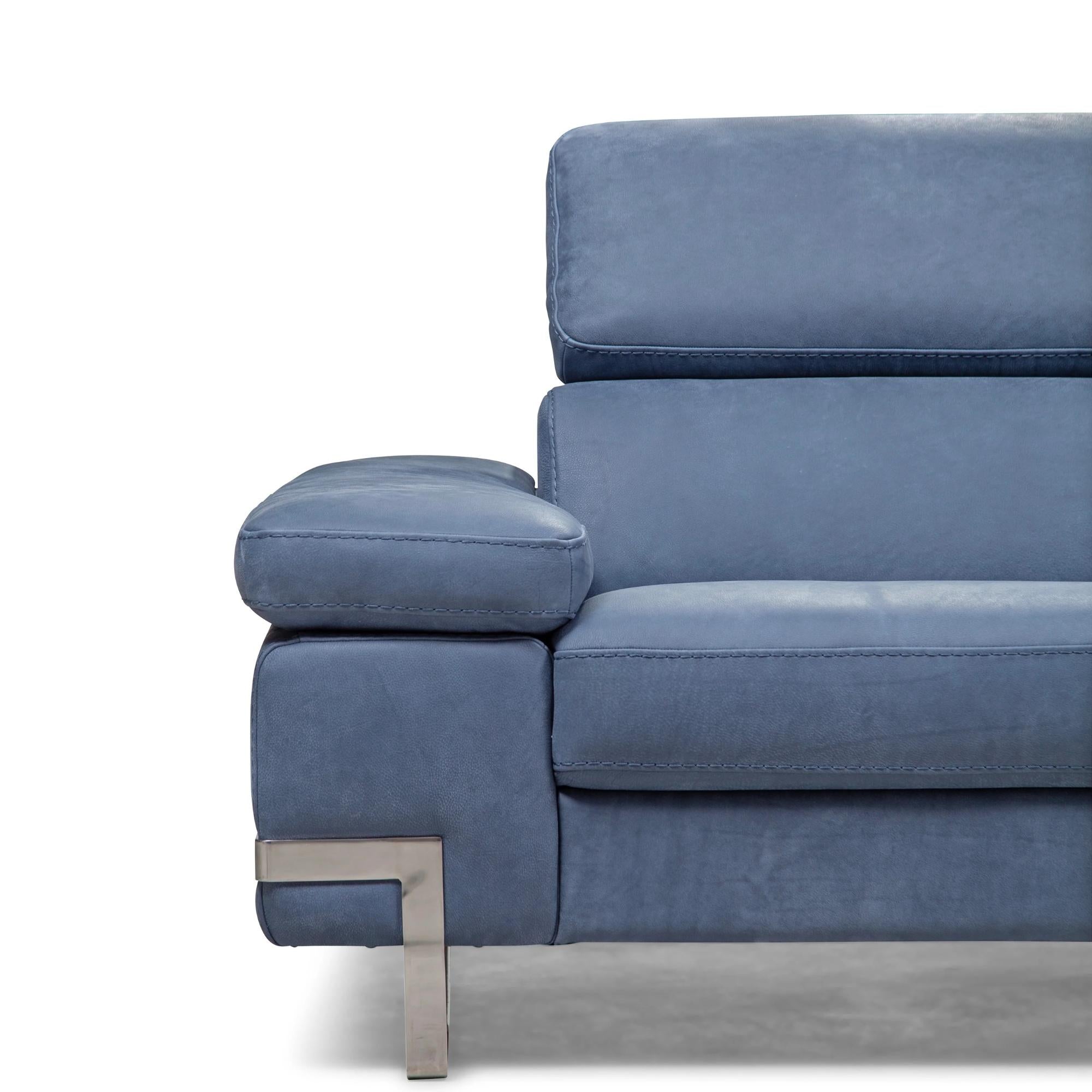 The Amanda Sofa delivers elevated comfort and contemporary elegance, upholstered in full-grain Italian leather available in serene Pacific Blue or versatile Dark Gray.