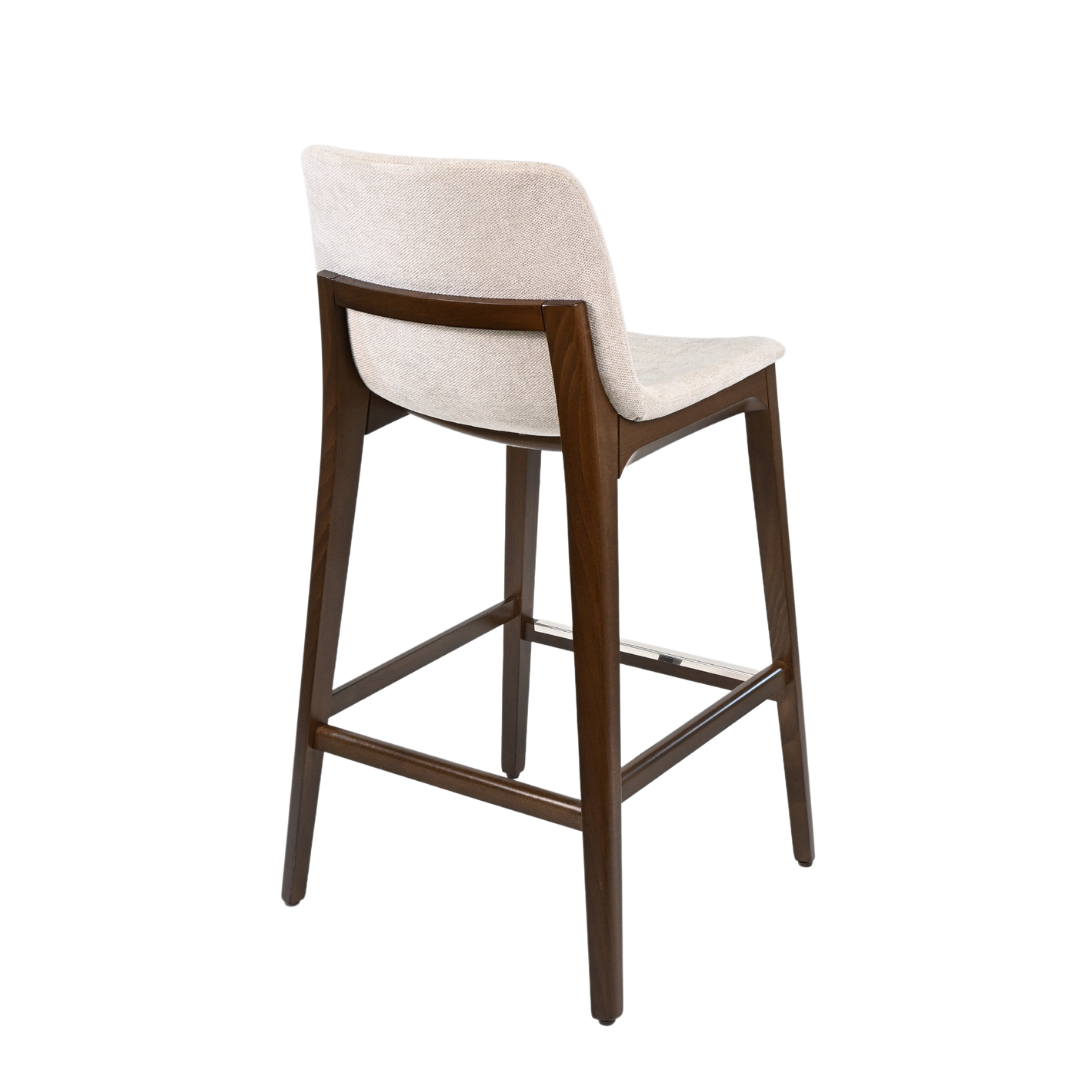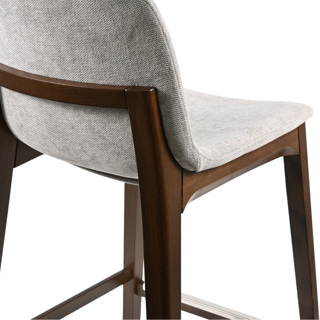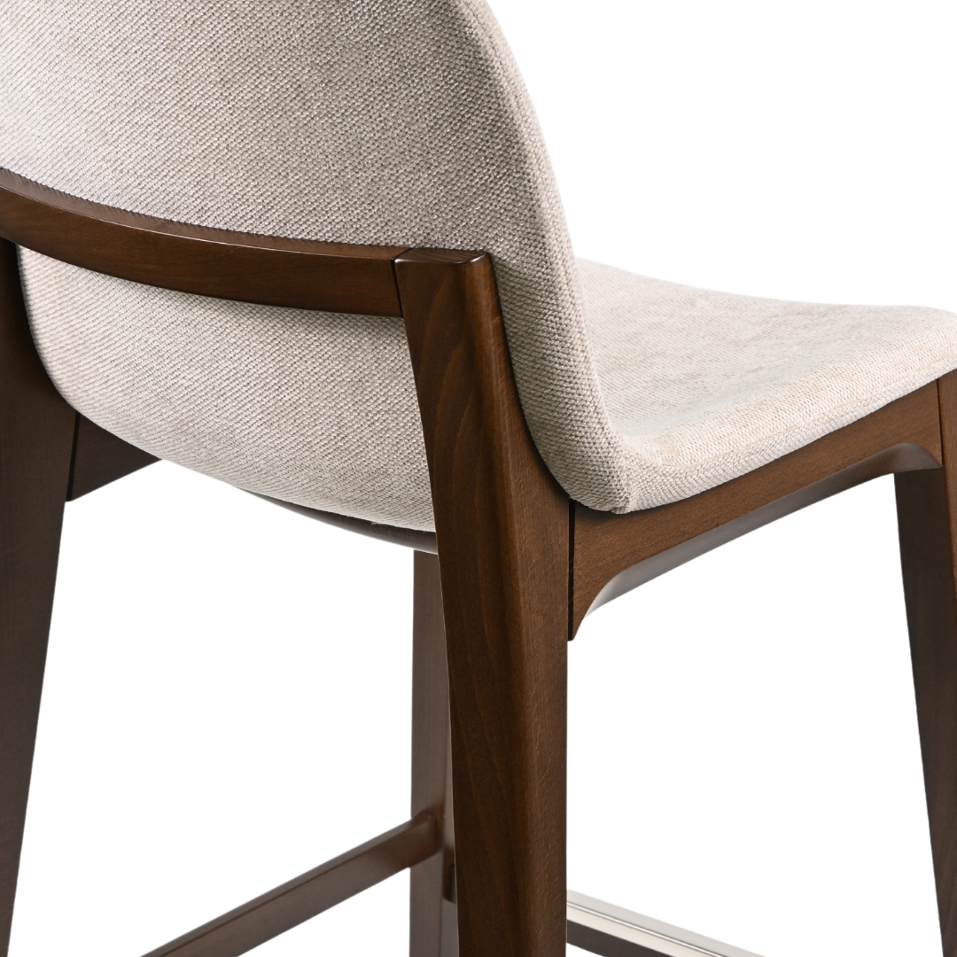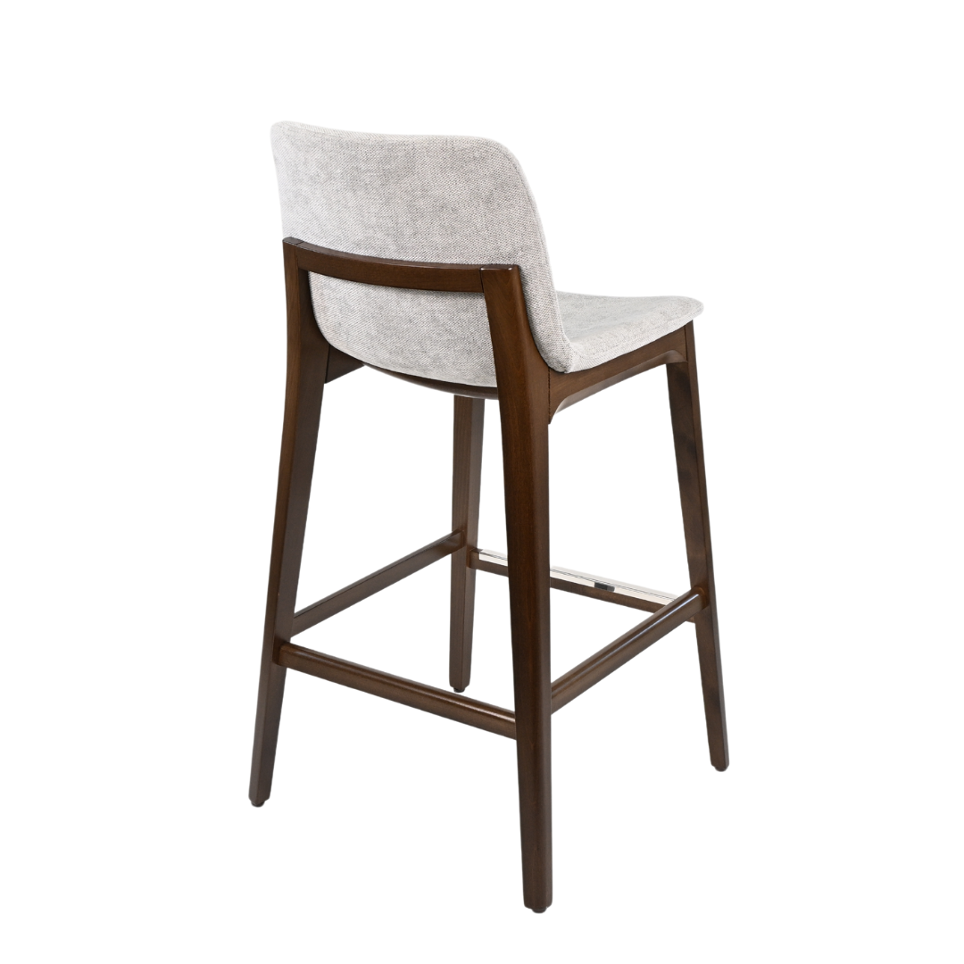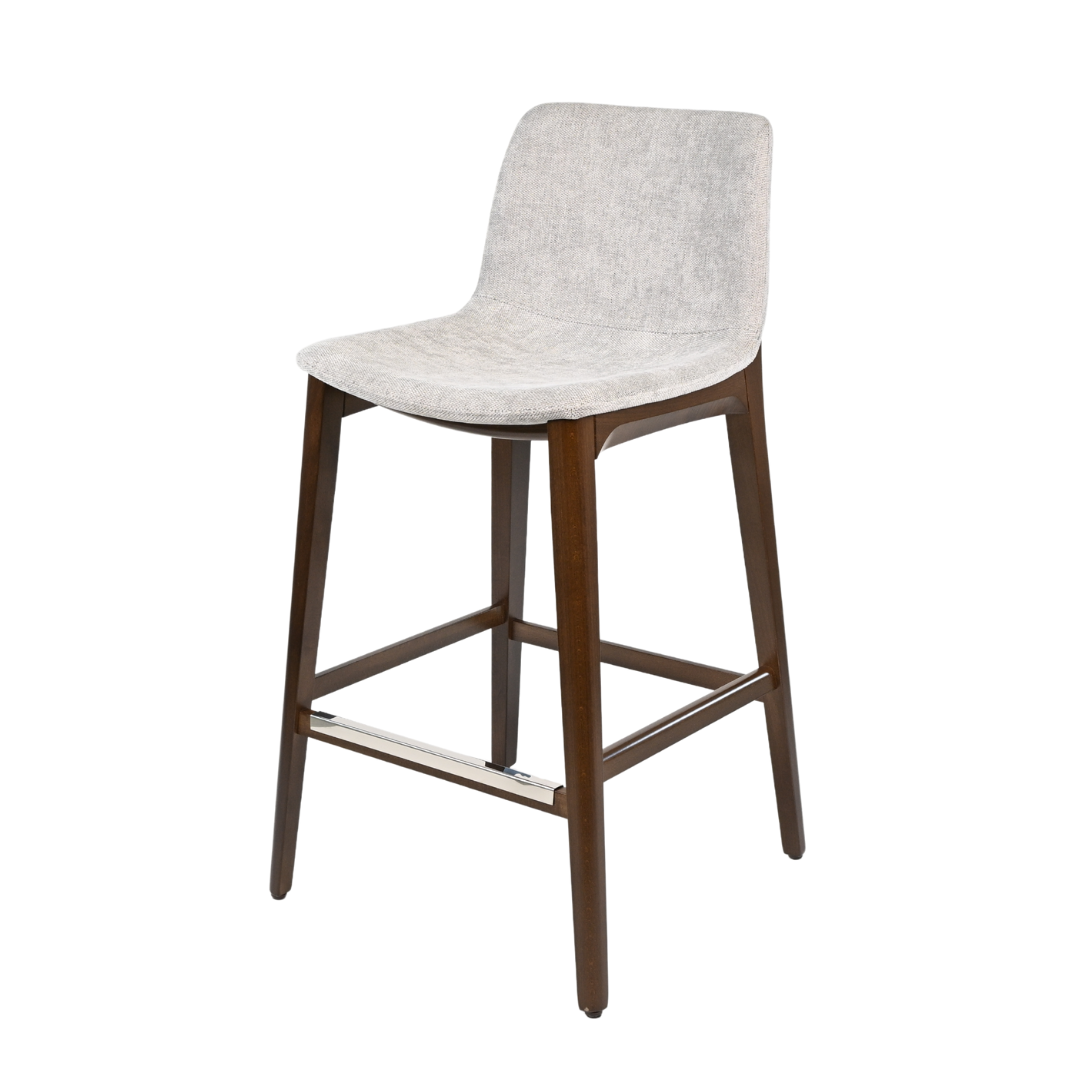 The Anita Fabric Barstool combines elegance and functionality with its refined design. It features a gently curved backrest and seat, upholstered in a soft, textured fabric for a comfortable seating experience. Available in two versatile fabric colours, Light Grey and Taupe, this barstool complements a variety of modern and transitional interiors. The stool is supported by walnut-finished legs, adding warmth and sophistication to its aesthetic. A polished Yulica footrest provides added support and durability, ensuring a practical yet stylish detail. Perfect for kitchen counters or bar areas, the Anita Barstool seamlessly blends comfort and design in any space.