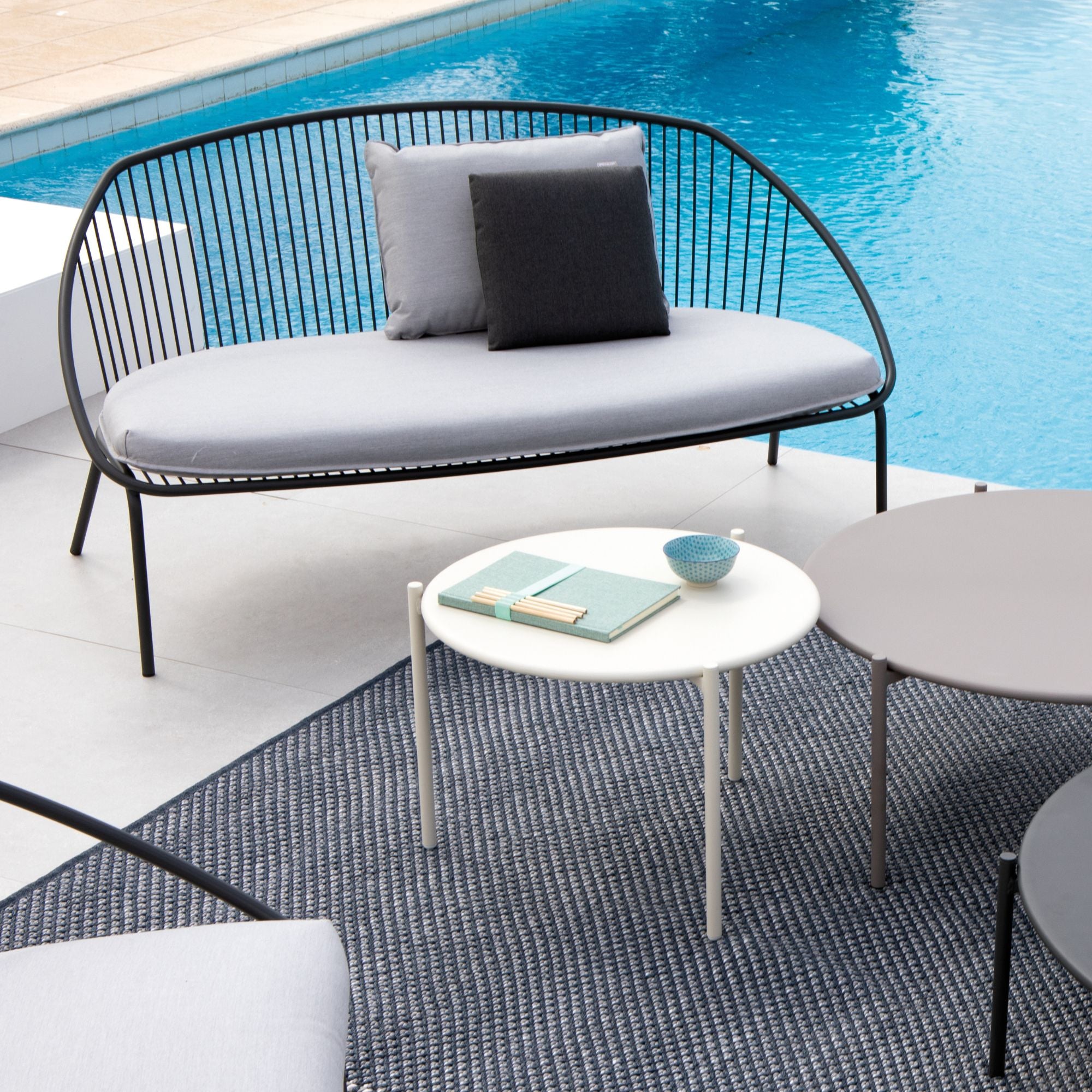 Il divano Aria Sofa Grey della collezione Italian Garden è caratterizzato da un elegante design con struttura in metallo ed è realizzato con materiale resistente all'acqua e ai raggi UV. È facile da pulire, con metalli rivestiti in polveri termoindurenti Qualicoat. Disponibile in grigio, questo divano misura L63" x P32" x H33" con un'altezza della seduta di 16". I cuscini sono venduti separatamente. Completa perfettamente il tuo spazio abitativo all'aperto con la nostra splendida collezione Aria Sofa.