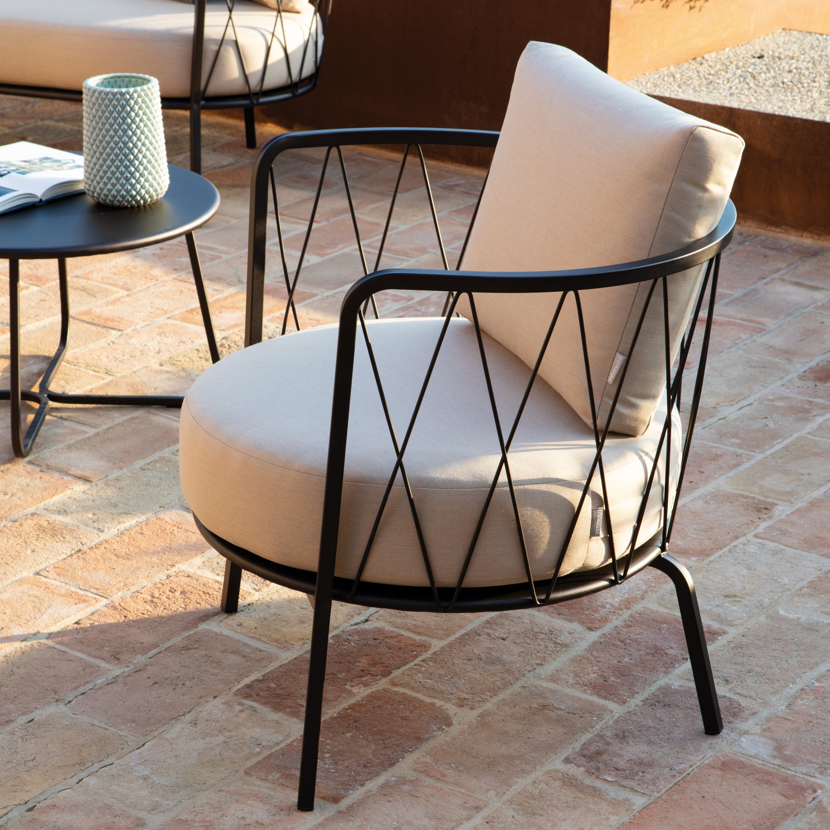 Entertain guests or enjoy moments with a loved one in comfort by updating your space with this Dasy Accent Chair. Part of the Italian Garden Collection, this accent chair features a metal frame design with water and UV resistant material. It's easy to clean, and the materials and metals are coated with Qualicoat thermosetting powders. Available in both white and mud grey frames with grey cushions. Cushions sold seperetly. Dimensions: L29" x D29" x H33", with a seat height of 18".