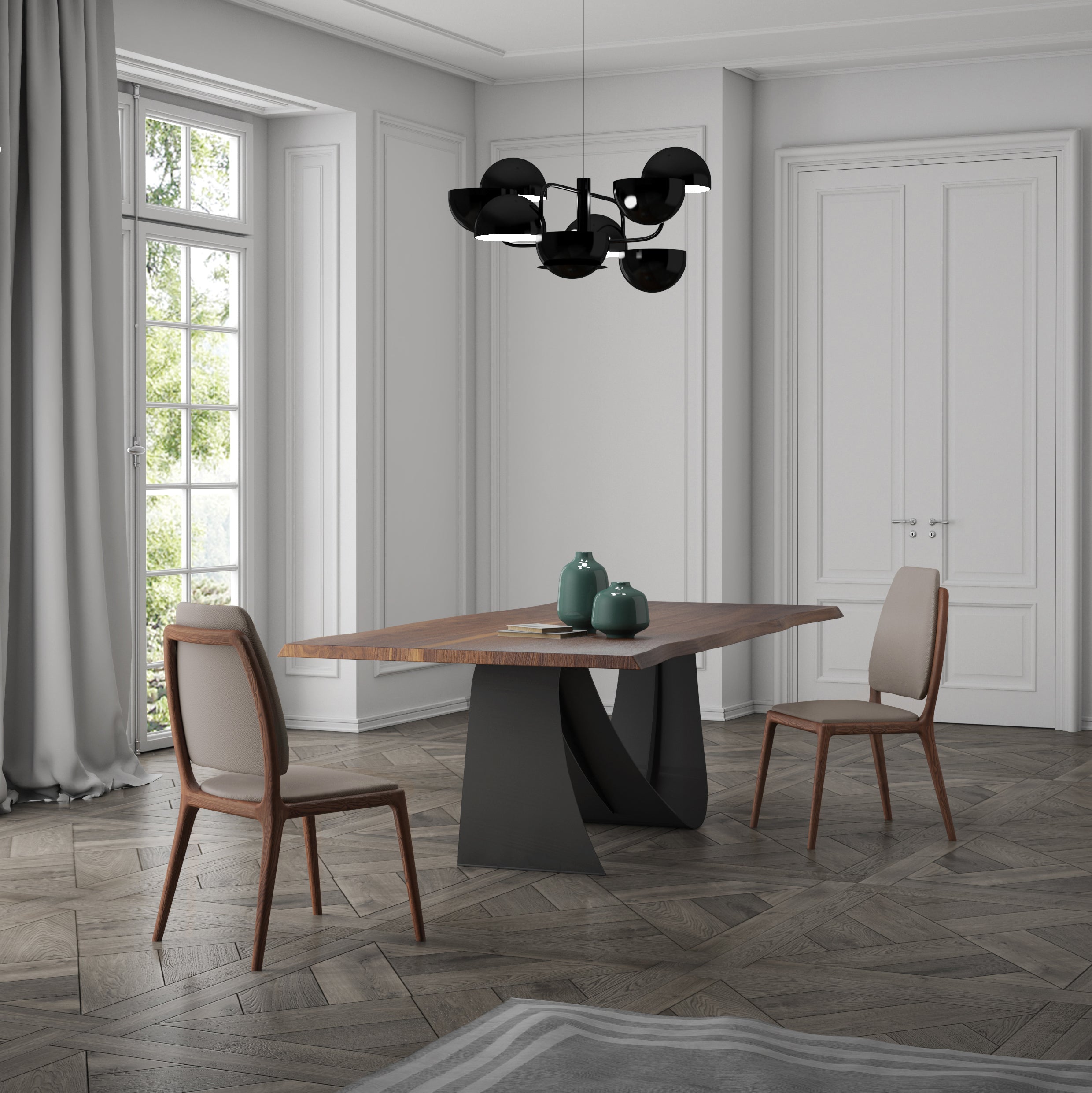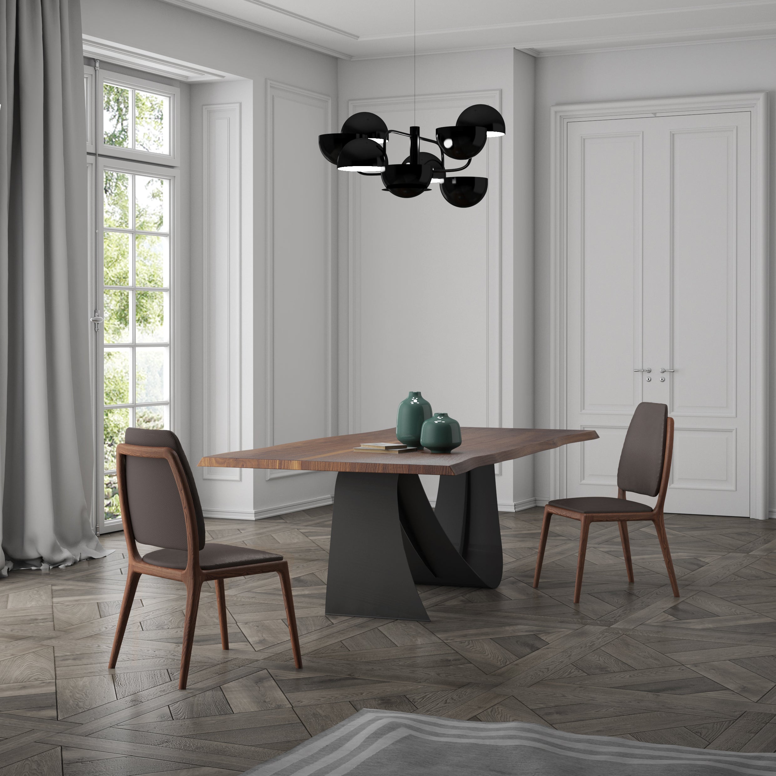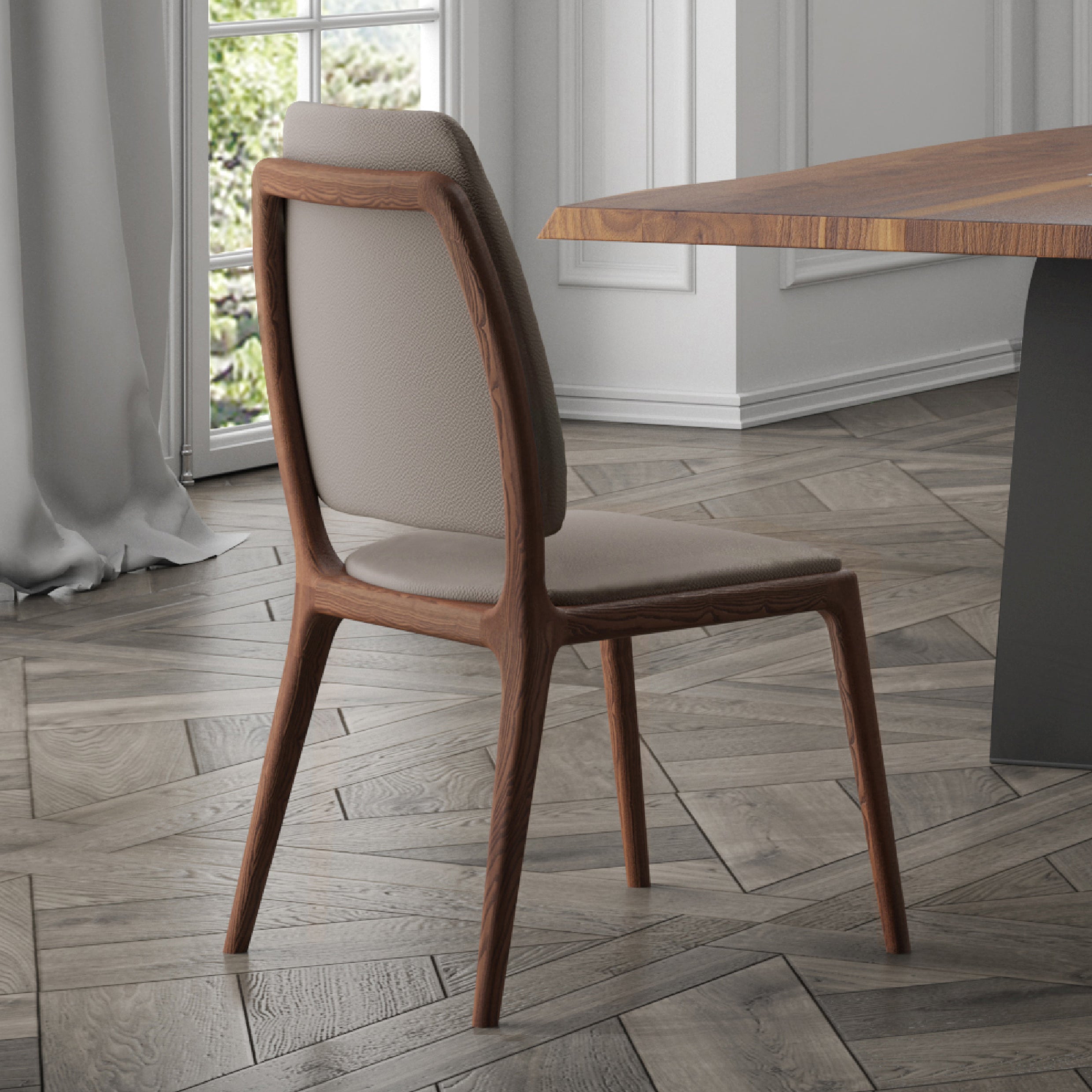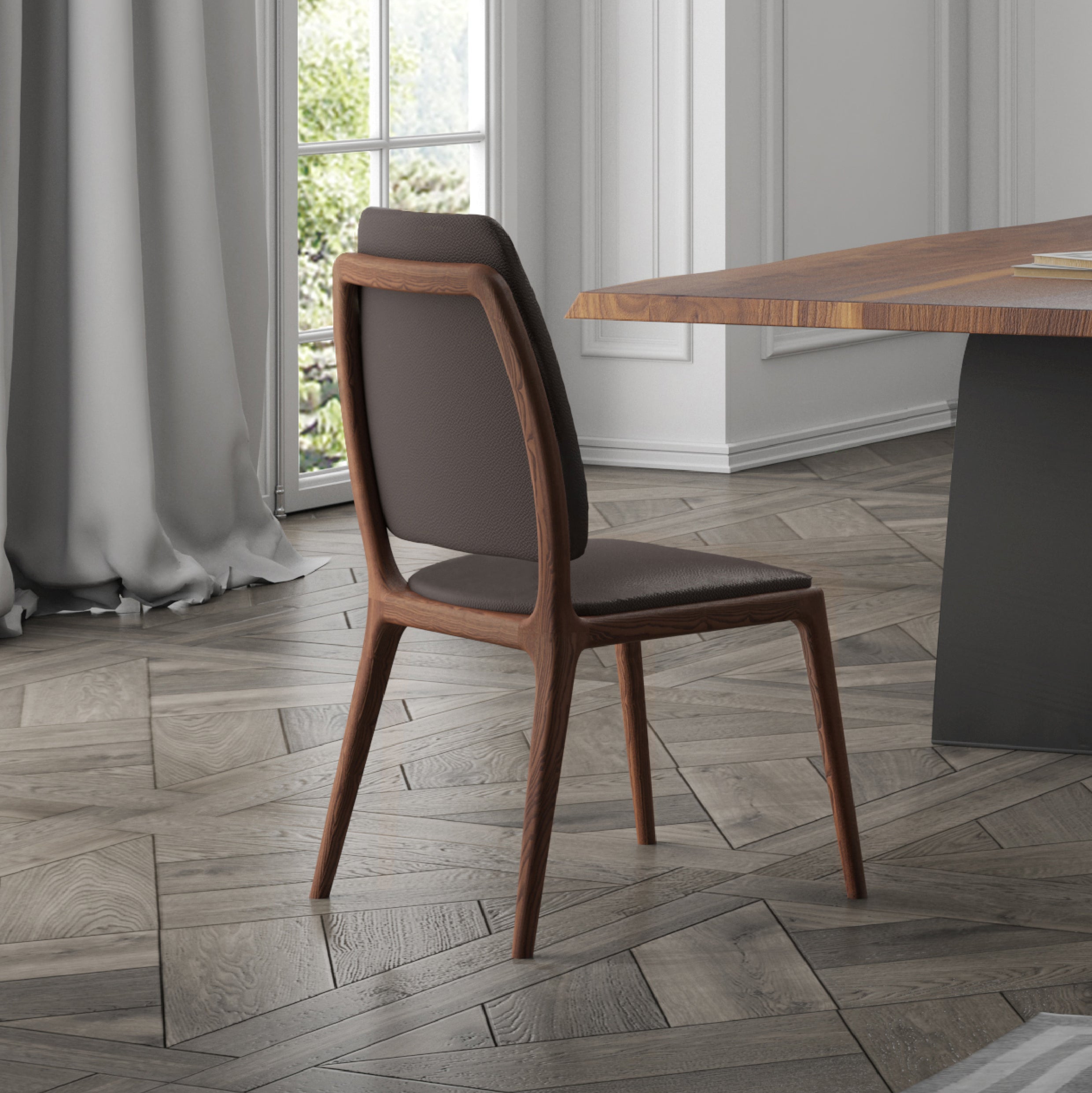 The Febe Dining Chair is a stunning Italian-made armchair featuring a leather seat and gorgeous walnut ash legs.