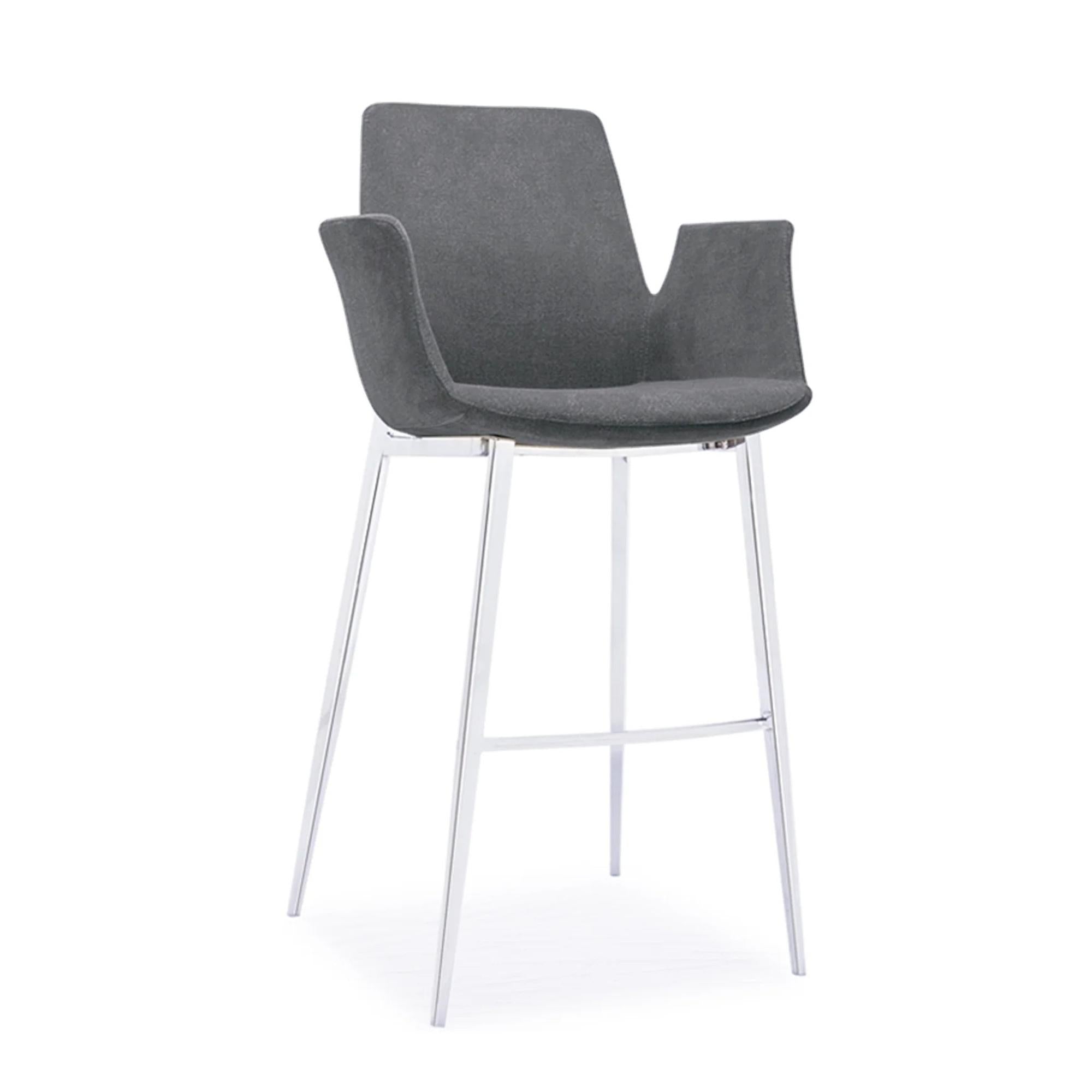 Lo sgabello da bar Gabriella in tessuto grigio chiaro è caratterizzato da una seduta accattivante e più ampia della maggior parte delle sedie da pranzo, che si abbina perfettamente alle sottili gambe lineari dello sgabello, eliminando l'ingombro e consentendo la piena visibilità del bancone a cui è abbinato.