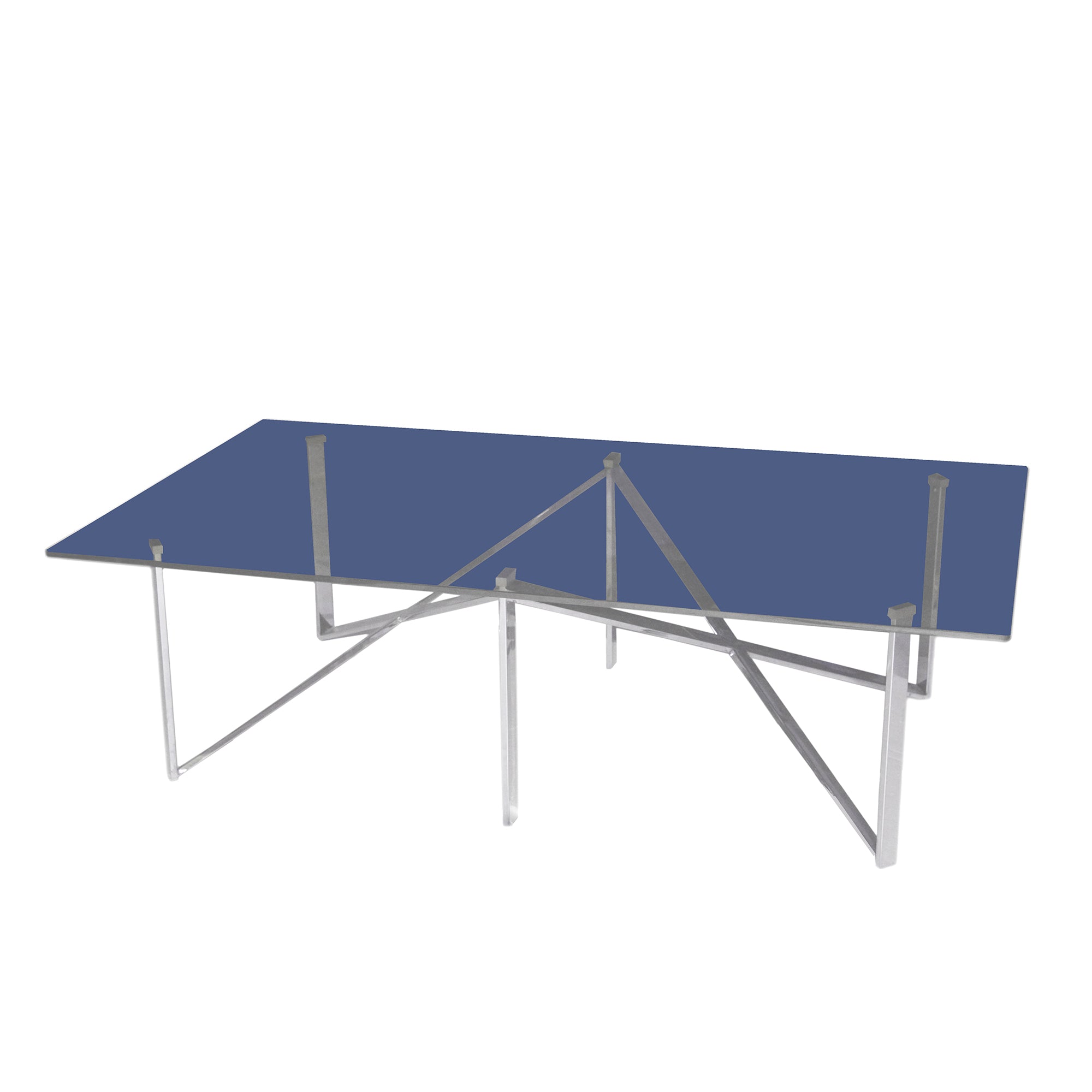 Il tavolino Gerald Coffee Table presenta un piano in vetro blu e una base in acciaio inossidabile, misura L 51'' x P 30'' x A 15''. Definisci il tuo soggiorno con drammaticità e glamour sofisticato nel sorprendente design moderno del tavolino Gerald Coffee Table di Bellini. Crea un senso di opulenza e spazio per ogni calice da vino e antipasto con questo tavolino da caffè nel tuo soggiorno.