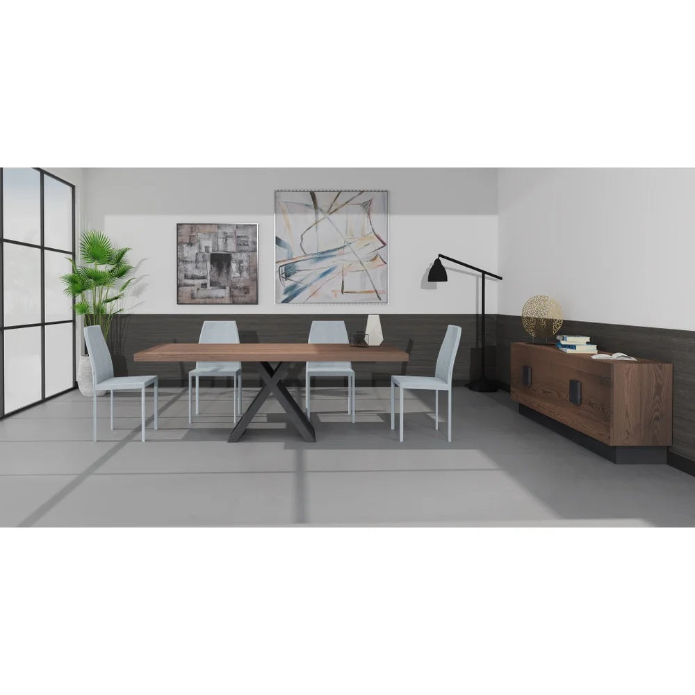 Invite a sense of refined modern elegance into your dining space with the Gian Dining Table. Crafted in Italy with exceptional attention to detail, this table features a rich solid walnut top with a straight 2.4" edge and a substantial 1.6" thickness that showcases the natural beauty of the wood grain. Supported by sleek dark wild ash legs, the design brings warmth and depth while maintaining a fresh contemporary look.