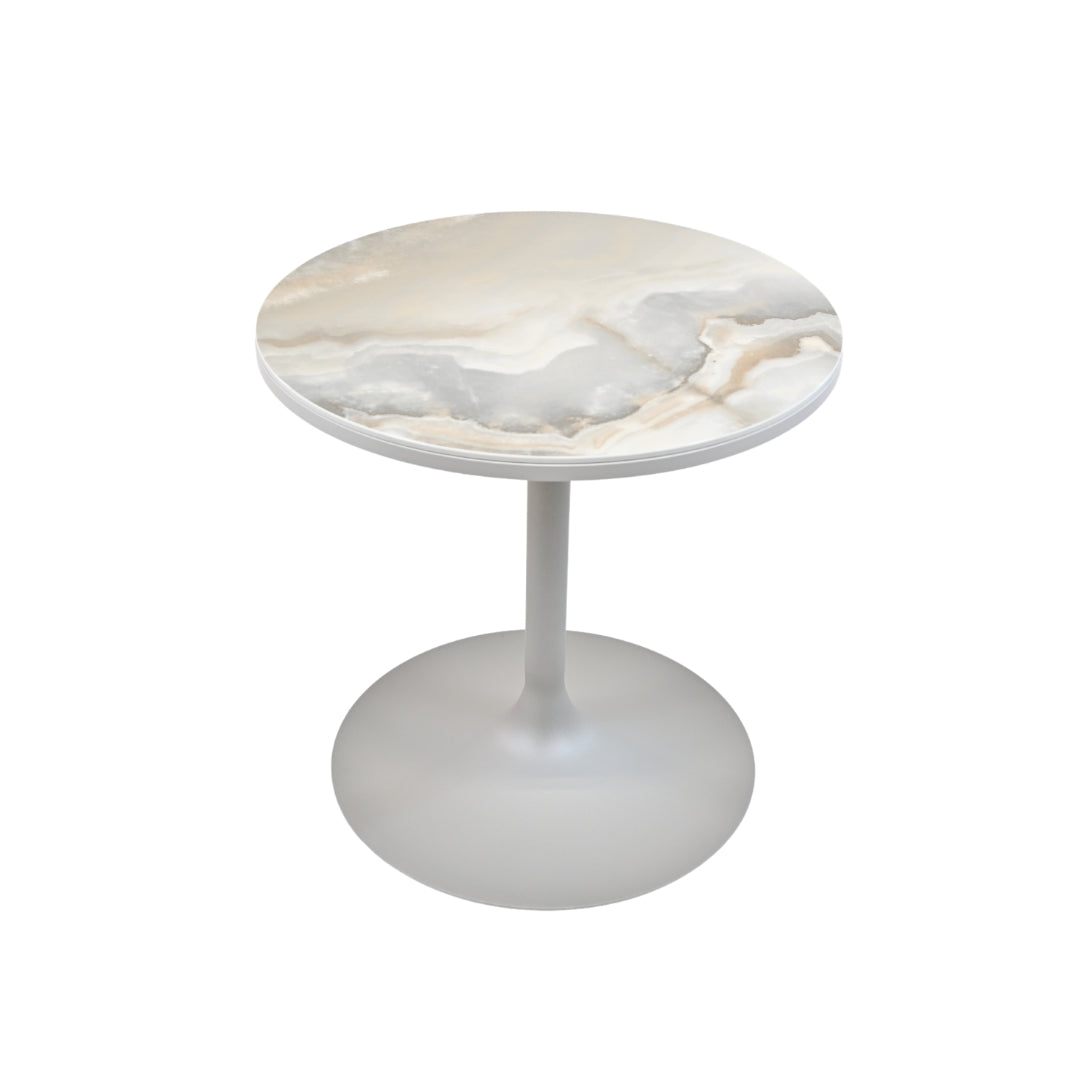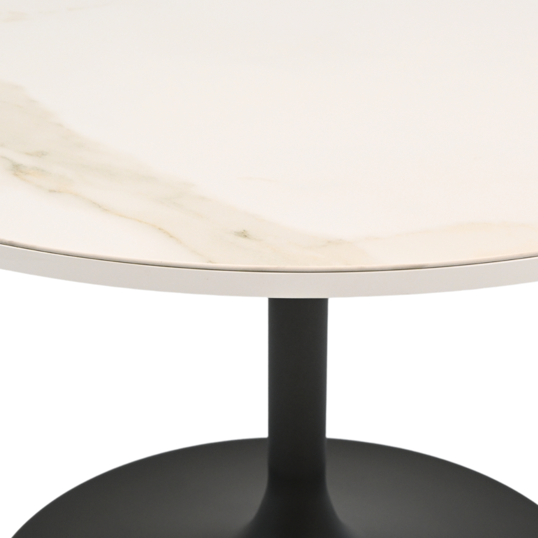 The ceramic top is available in luxurious finishes, including Calacatta White Matte, Calacatta Black, Onice Beige, and Patagonia, offering stunning natural patterns that add a touch of refinement to any room.