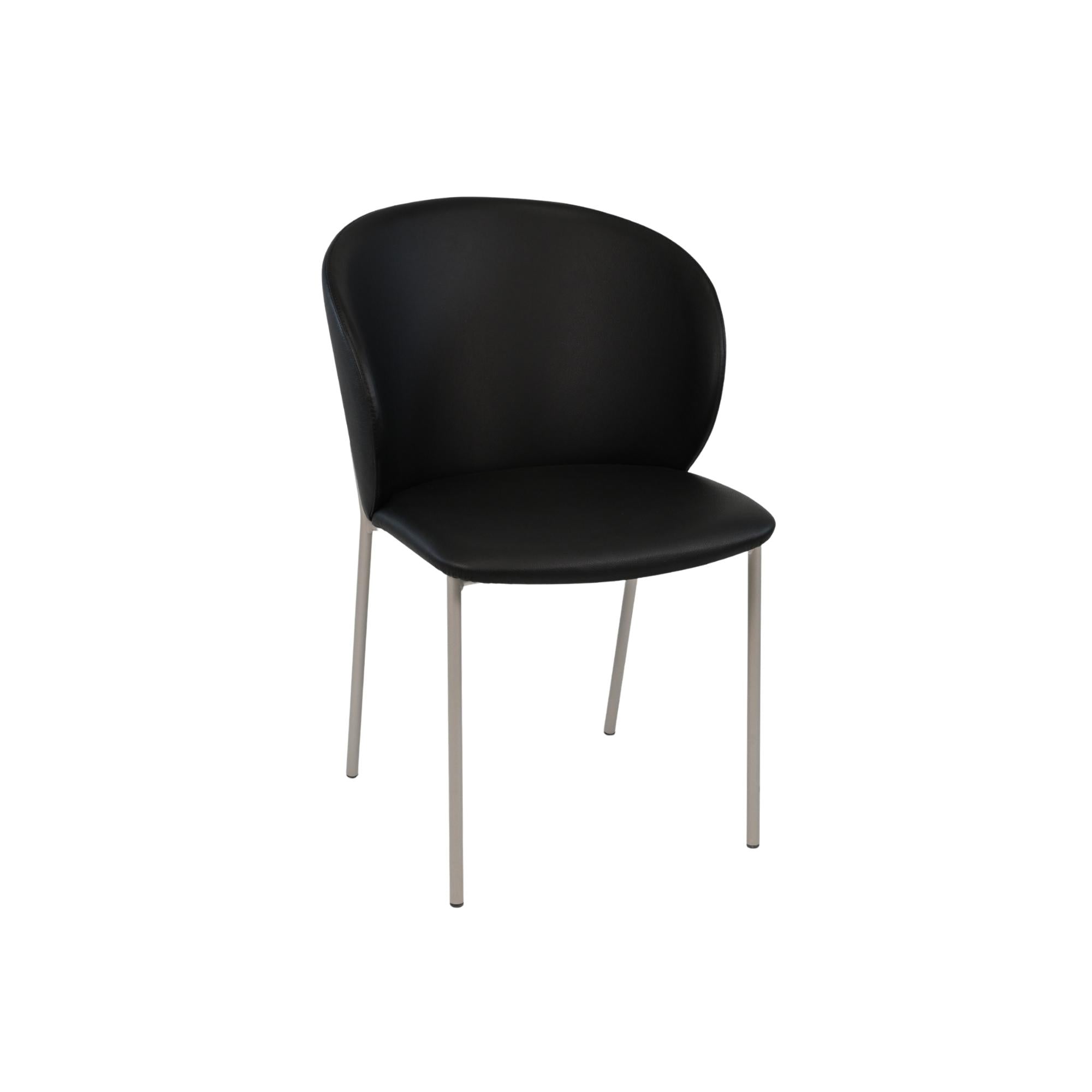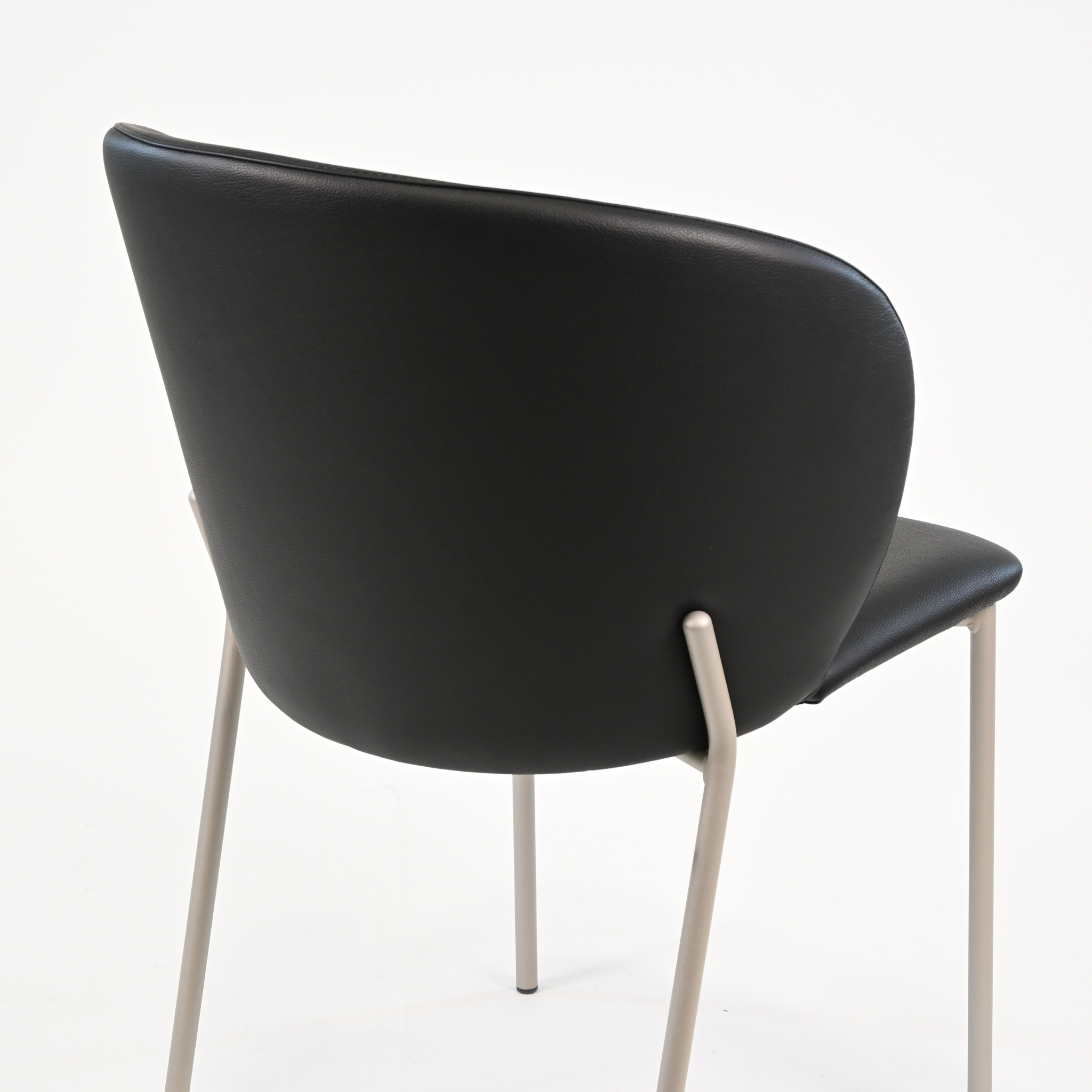 Supported by slim yet sturdy anthracite-finished legs, the design feels grounded while retaining a light, contemporary presence. Available in five versatile leather colour options including Anthracite, Grey, Black, Tan, and White, this armchair integrates effortlessly into a wide range of dining interiors. The Melodi is also offered in a dining chair (without armrests) and counterstool version, allowing for cohesive and flexible seating arrangements throughout the space.