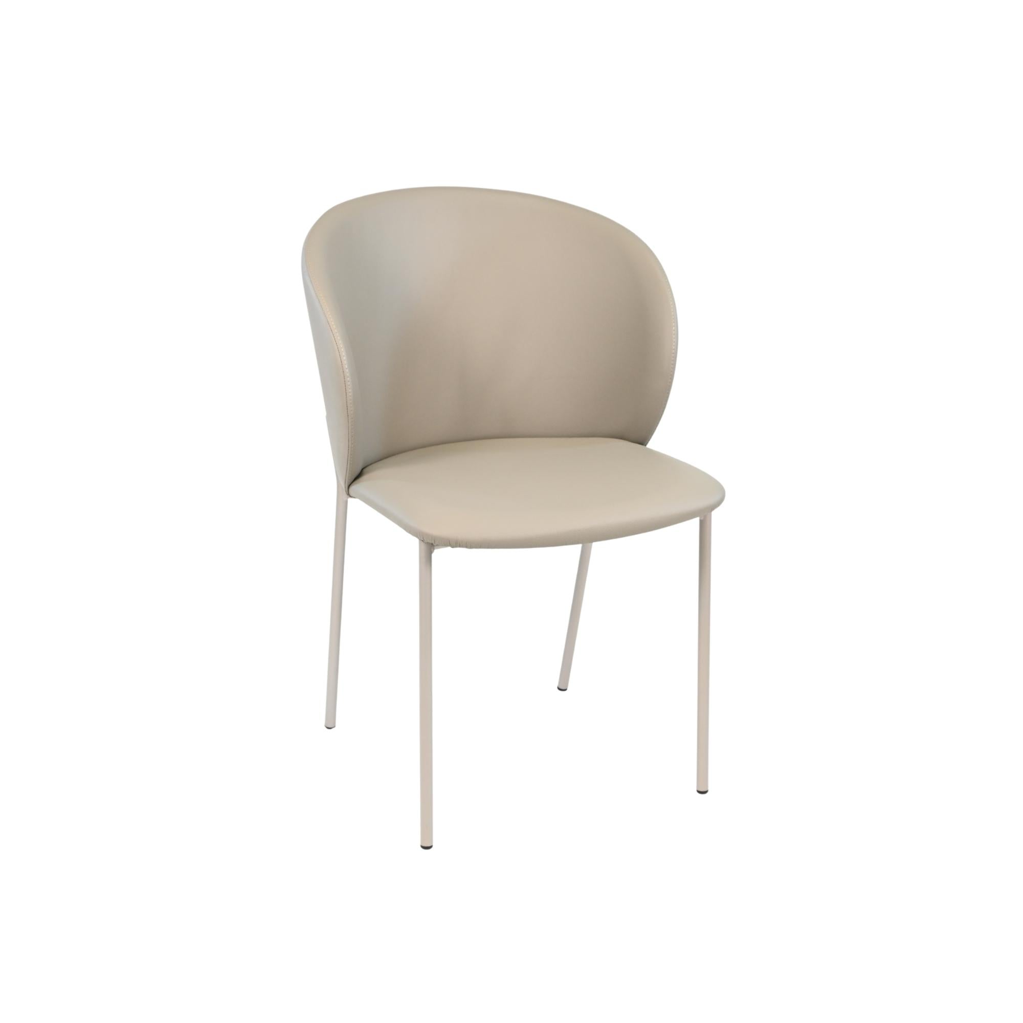 The Melodi Dining Armchair features a sleek, modern silhouette with gently curved armrests that flow seamlessly into the backrest, offering added comfort and support while maintaining a refined profile. Upholstered in smooth leather with matched stitching, the seat and back feel tailored and durable, delivering both comfort and an elevated finish.