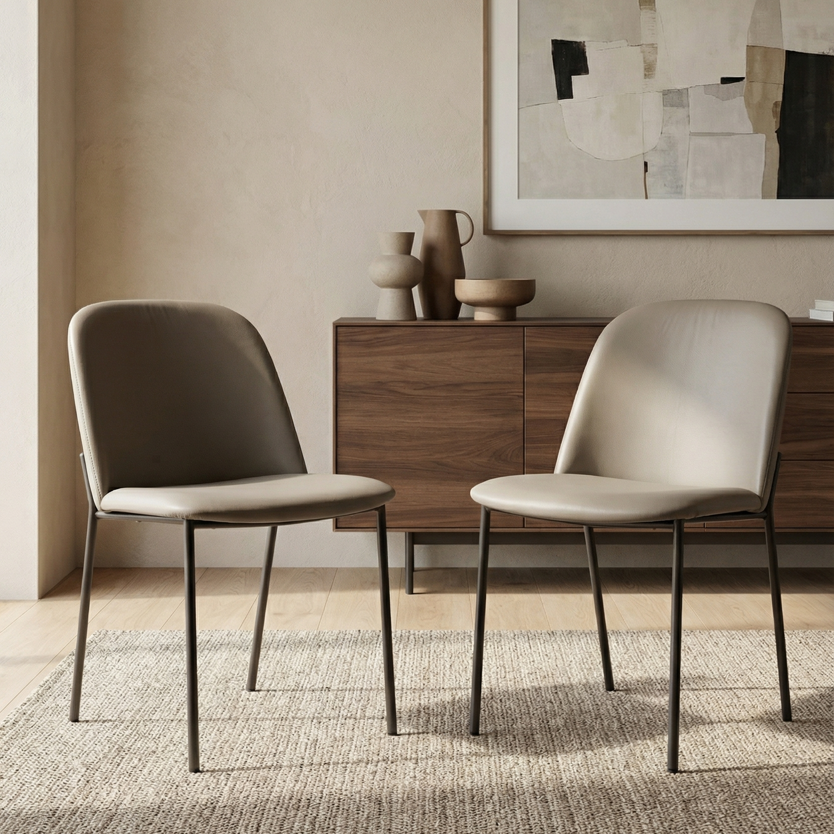The chair is supported by slim, sturdy Anthracite legs that enhance its minimalist appeal. It is available in five versatile leather colour options: Anthracite, Grey, Black, Tan, and White, allowing it to seamlessly blend with various dining room styles. This model is also available as a dining armchair and counterstool, offering cohesion and flexibility for mixed seating arrangements in dining spaces.