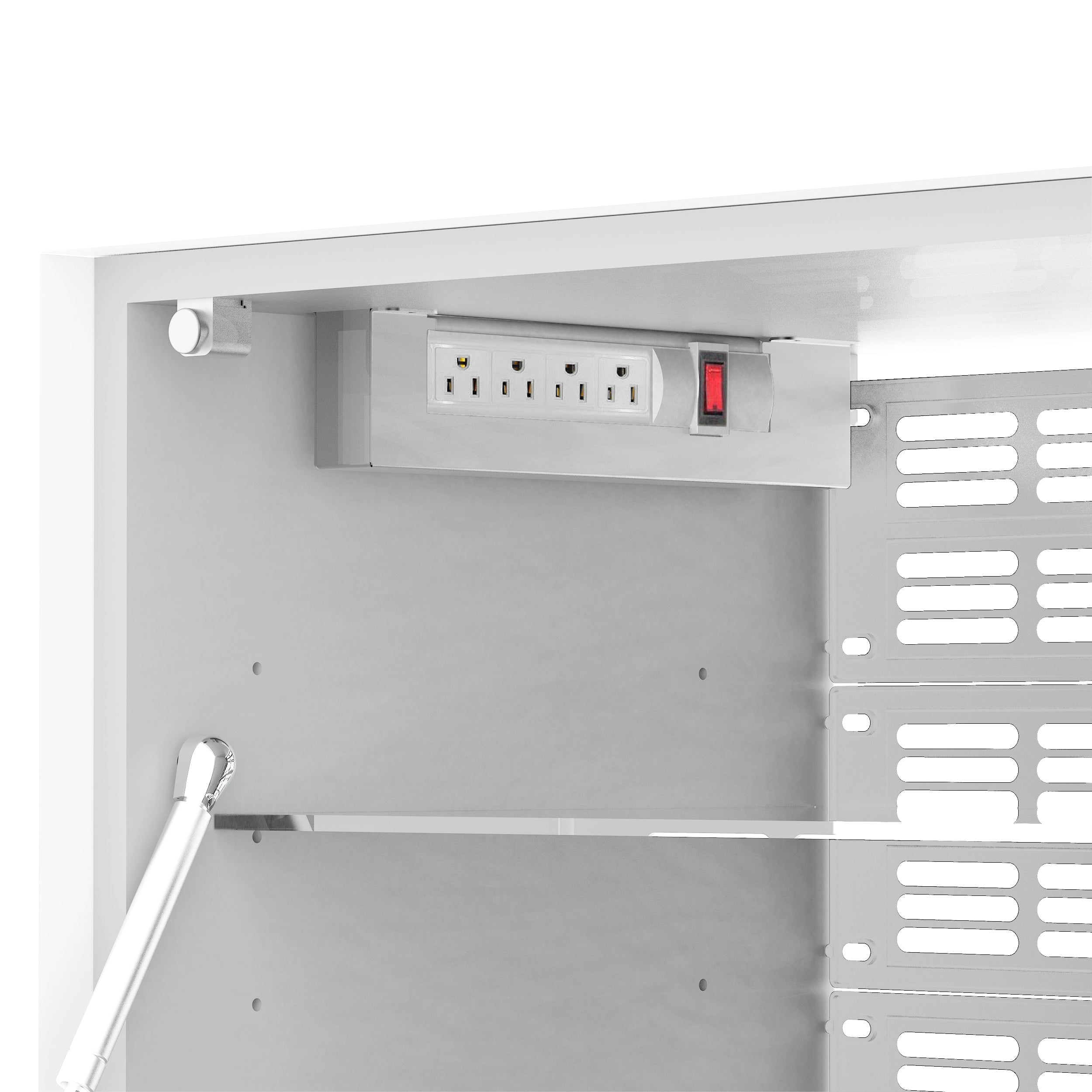 Il mobile TV con 4 ante push-pull, illuminazione a LED, ante centrali con Active Door, griglie per ventilazione e multipresa è caratterizzato da un piano in noce e da un lato con ante in vetro bianco. Dimensioni: 87" x 20" x 32". Il moderno centro dell'attenzione. Porta il modernismo a casa con il mobile TV Michele.