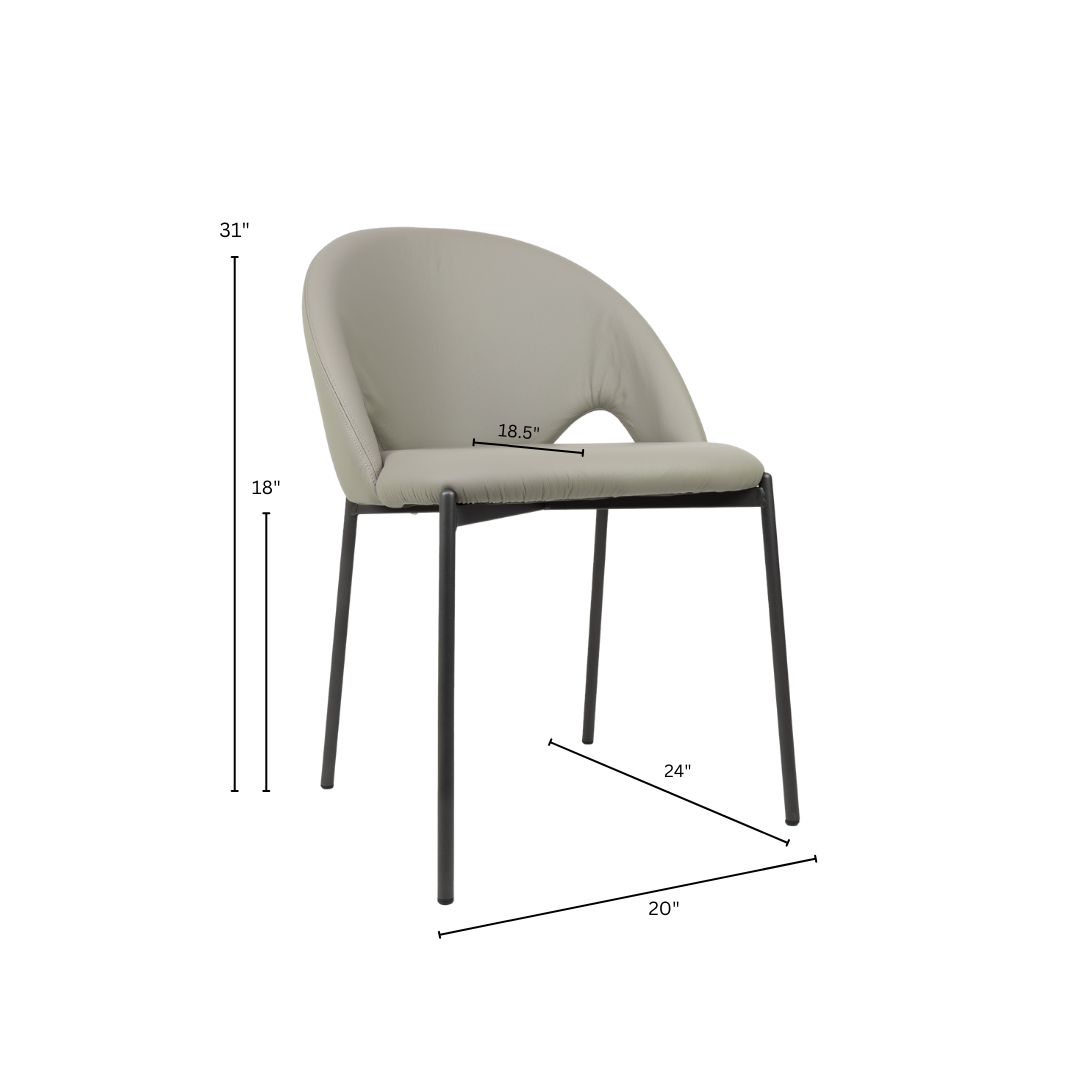 Available in five versatile leather colours including Anthracite, Grey, Black, White, and Tan, the Nadia adapts beautifully to a range of interior styles. Thoughtfully proportioned and comfortable for everyday use, this chair elevates dining seating with a blend of refined materials and confident design.