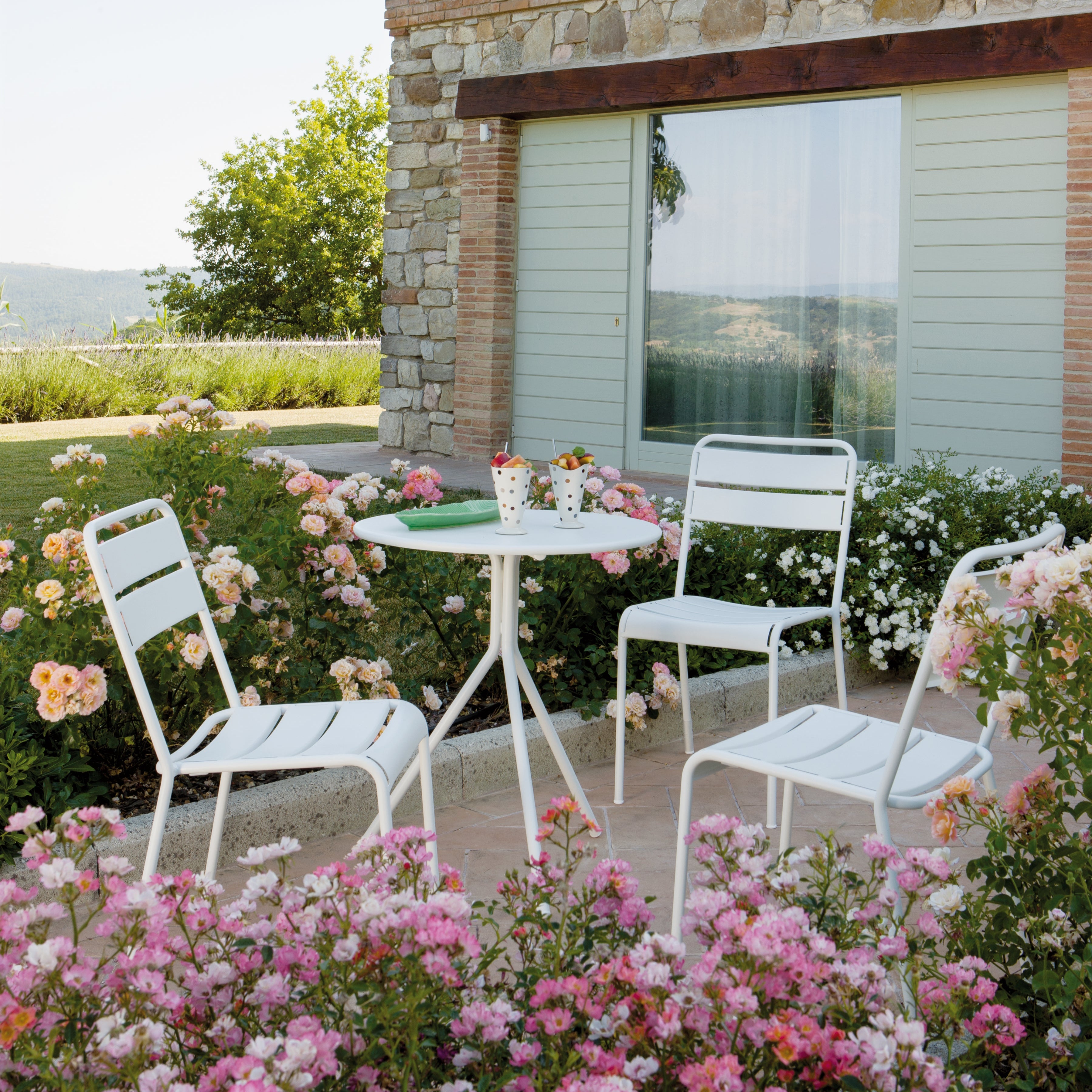 Tavolo da pranzo rotondo Rick bianco. Parte della collezione Italian Garden, questo tavolo da pranzo rotondo presenta un design con struttura in metallo con materiale resistente all'acqua e ai raggi UV. È facile da pulire e i materiali e i metalli sono rivestiti con polveri termoindurenti Qualicoat. Disponibile in bianco, il tavolo misura 31" di diametro e 30" di altezza. Coltiva conversazioni e complimenti sui tuoi pasti attorno a questo elegante tavolo da pranzo rotondo per esterni.