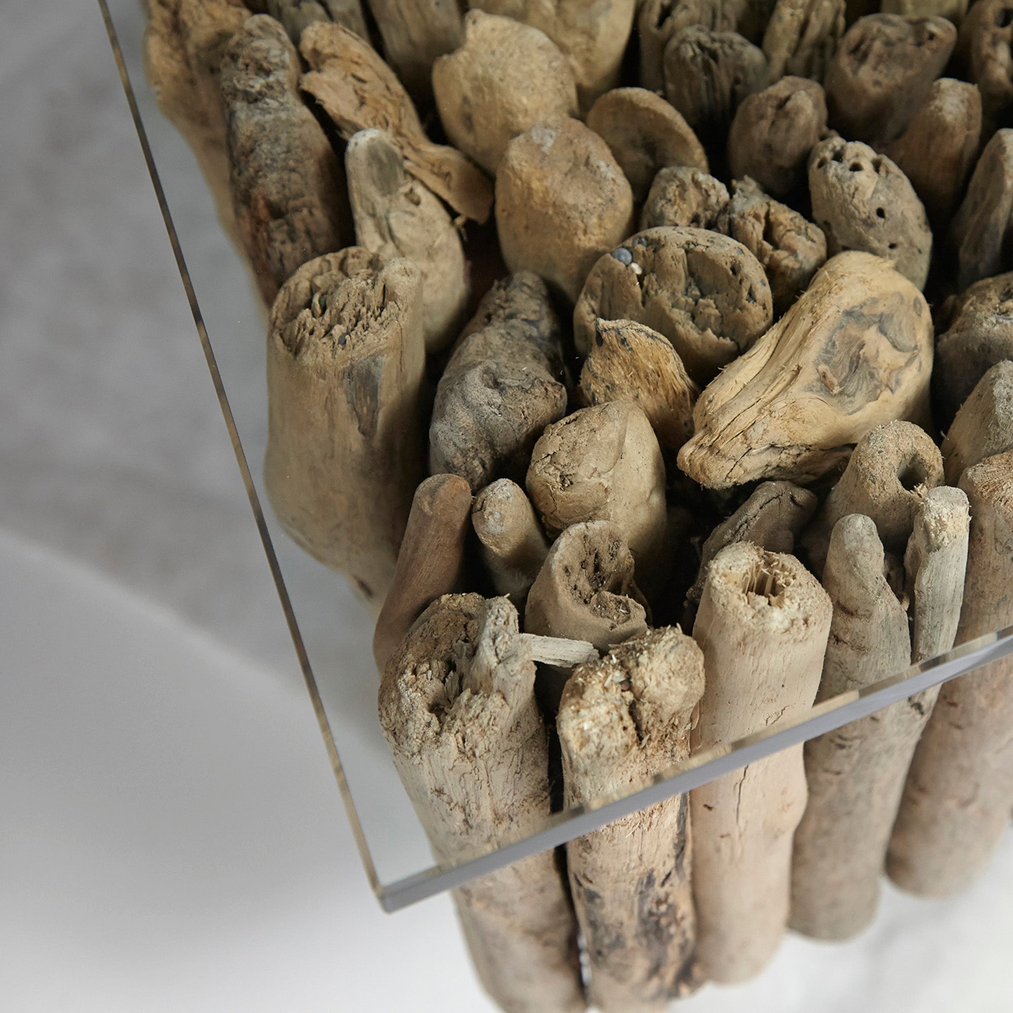 Il tavolino Safari da 51" è caratterizzato da esclusivi pezzi di legno di mare, che donano alla casa un'atmosfera tipicamente rustica.