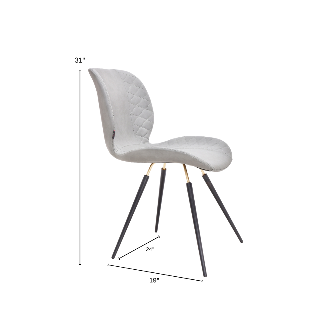 The Sean Dining Chair features a soft PU cover with a gold accent black frame. Available in Dark Blue, Light Grey, and White, the Sean design combines a minimalist and modern aesthetic that will integrate fantastically with your décor.