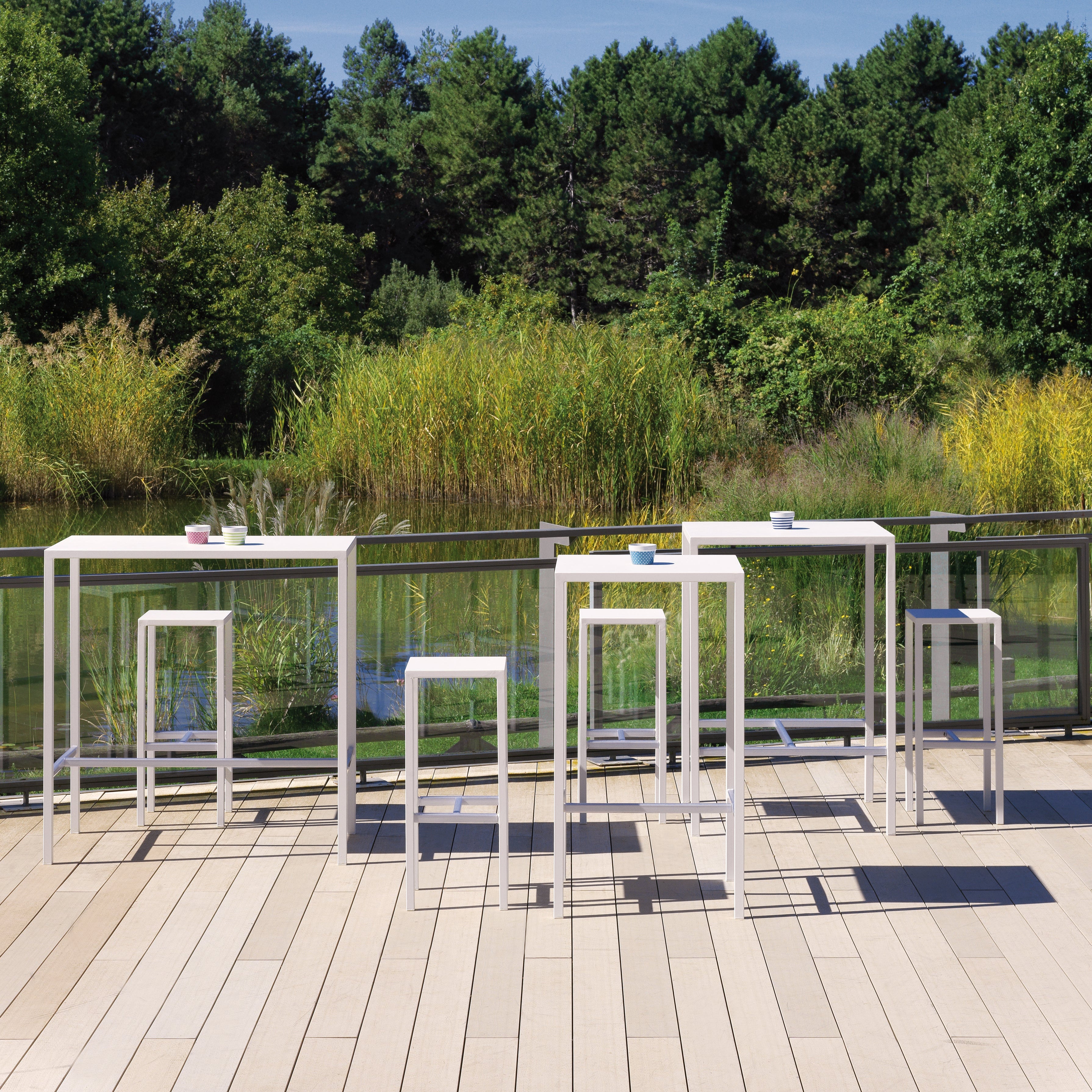 The Seaside 1 Bar Table & 4 Barstools is available in white and Gray. Part of the Italian Garden Collection, is features a metal frame design with water and UV resistant materials. It's easy to clean, with materials and metals coated with Qualicoat thermosetting powders. Available in gray or white, the set includes a table measuring L30" x L30" x H43" and barstools measuring L13" x D13" x H31". This five-piece patio set provides the perfect spot to relax and enjoy a drink with friends outside.