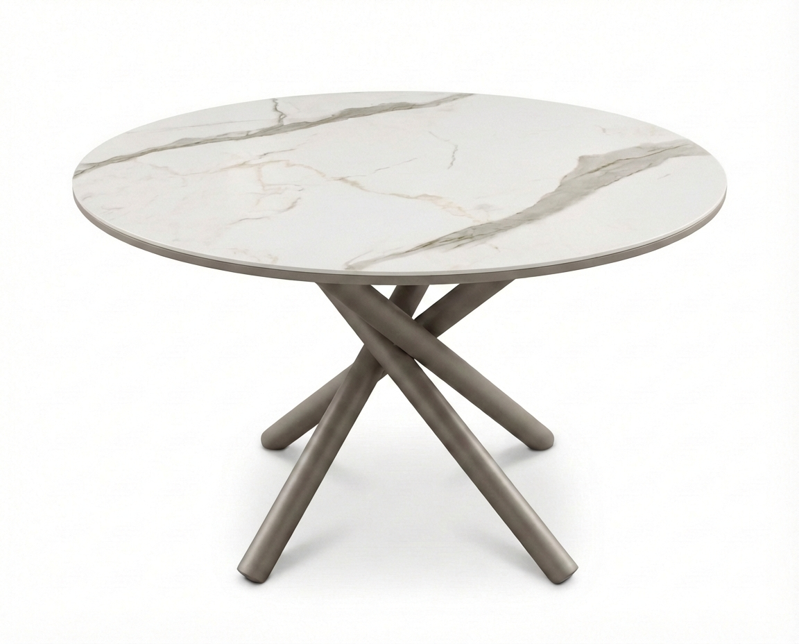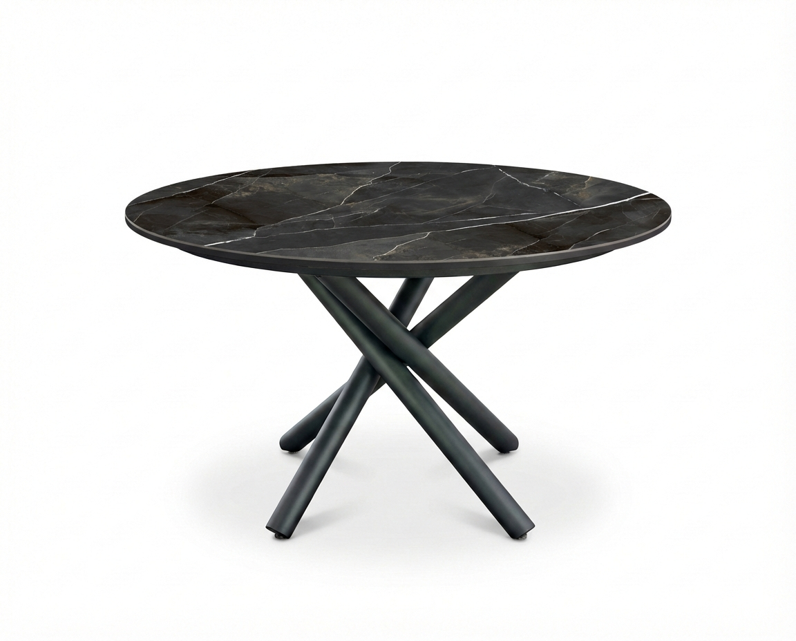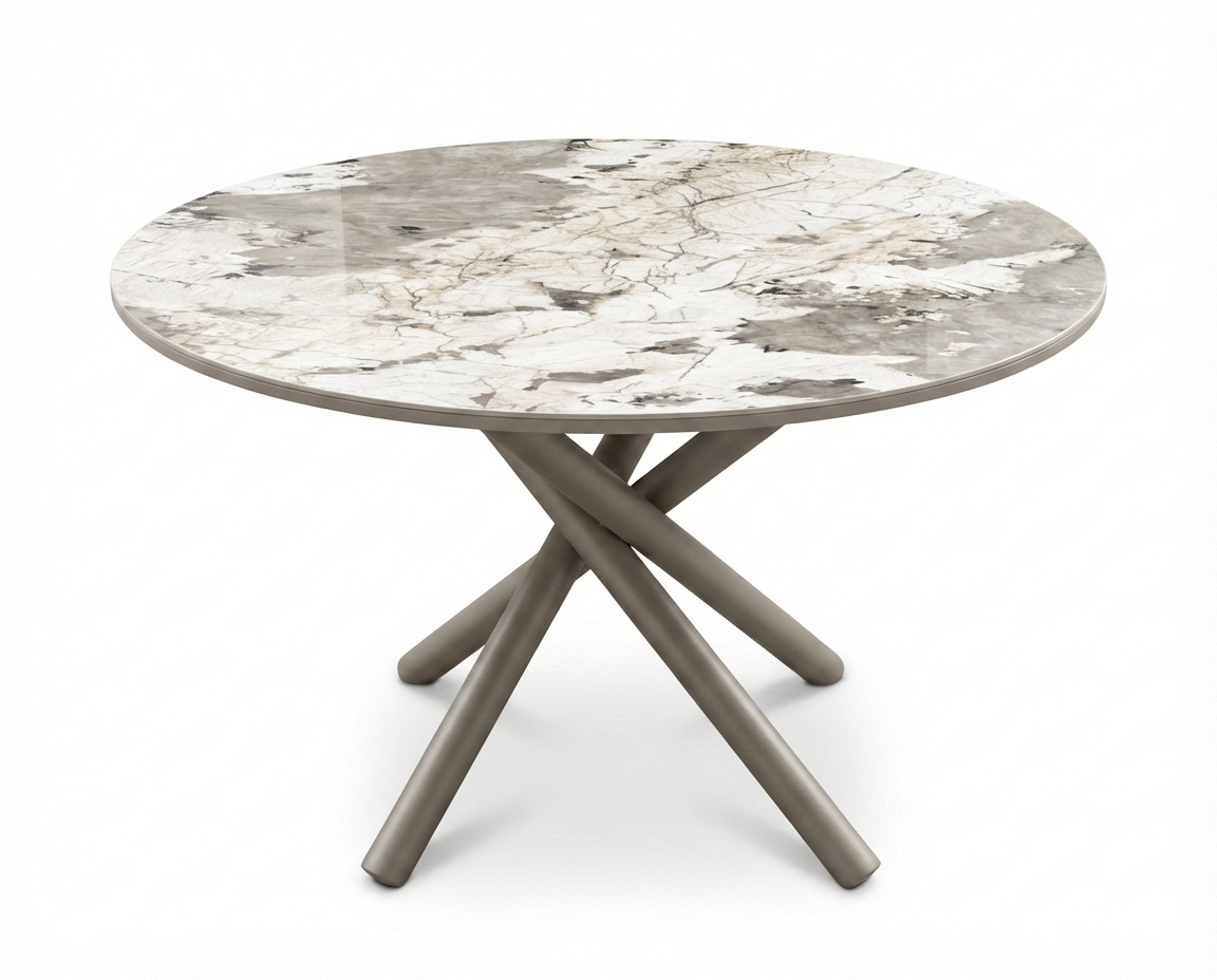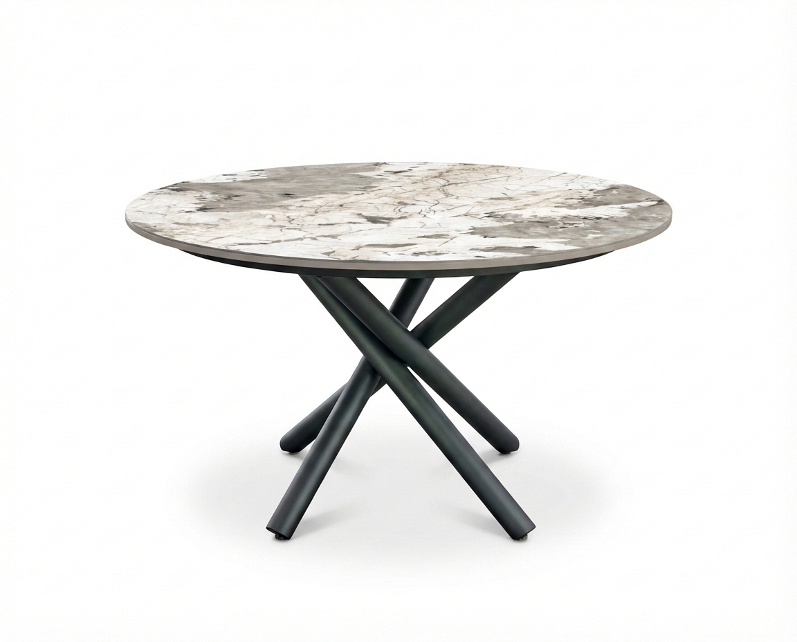 The Umbria Dining Table is a refined choice for smaller dining spaces, offering Italian craftsmanship, thoughtful proportions, and design-forward style. Made in Italy, it features a sculptural base in anthracite or silver with elegantly twisted legs that draw the eye and add subtle architectural character. The table top is offered in four different ceramic finishes (Calacatta Black, Calacatta White Opaco Matte, Onice Beige, Patagonia), giving you the flexibility to choose a surface that enriches your décor with texture, color, or pattern.