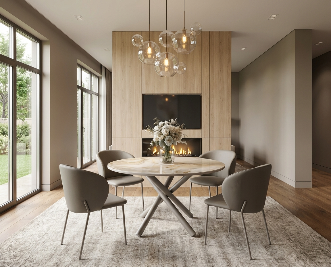 With diameter options of 39″ or 47″, Umbria works beautifully as a cozy dining spot for two to four people - a perfect fit for apartments, breakfast nooks, or intimate dining corners. Its compact footprint does not compromise on style or sophistication, making it an ideal balance of practicality and elegance.