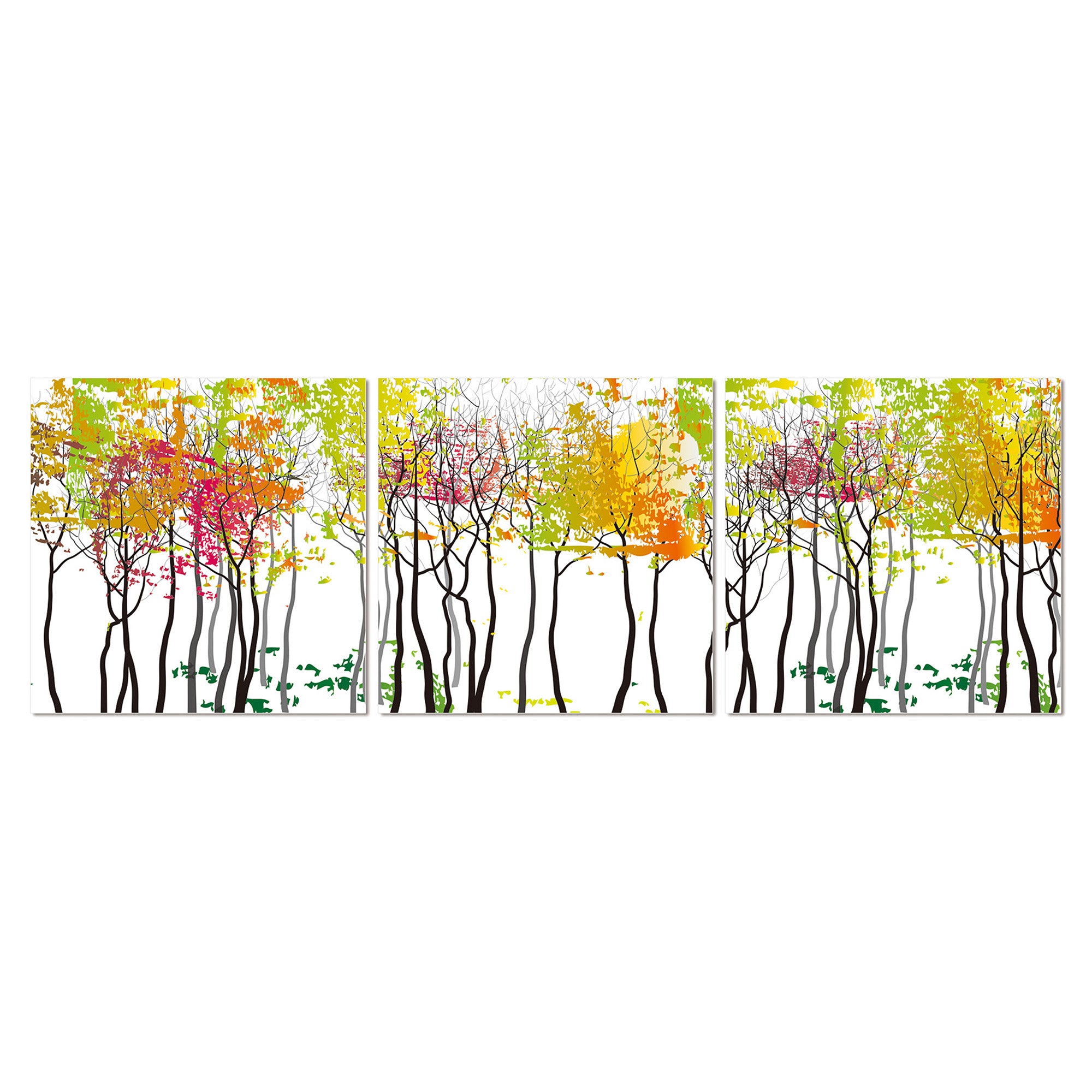 This 3 piece acrylic panel picture, titled "Forest in the Falls," beautifully captures the serene essence of a forest intertwined with cascading waterfalls.