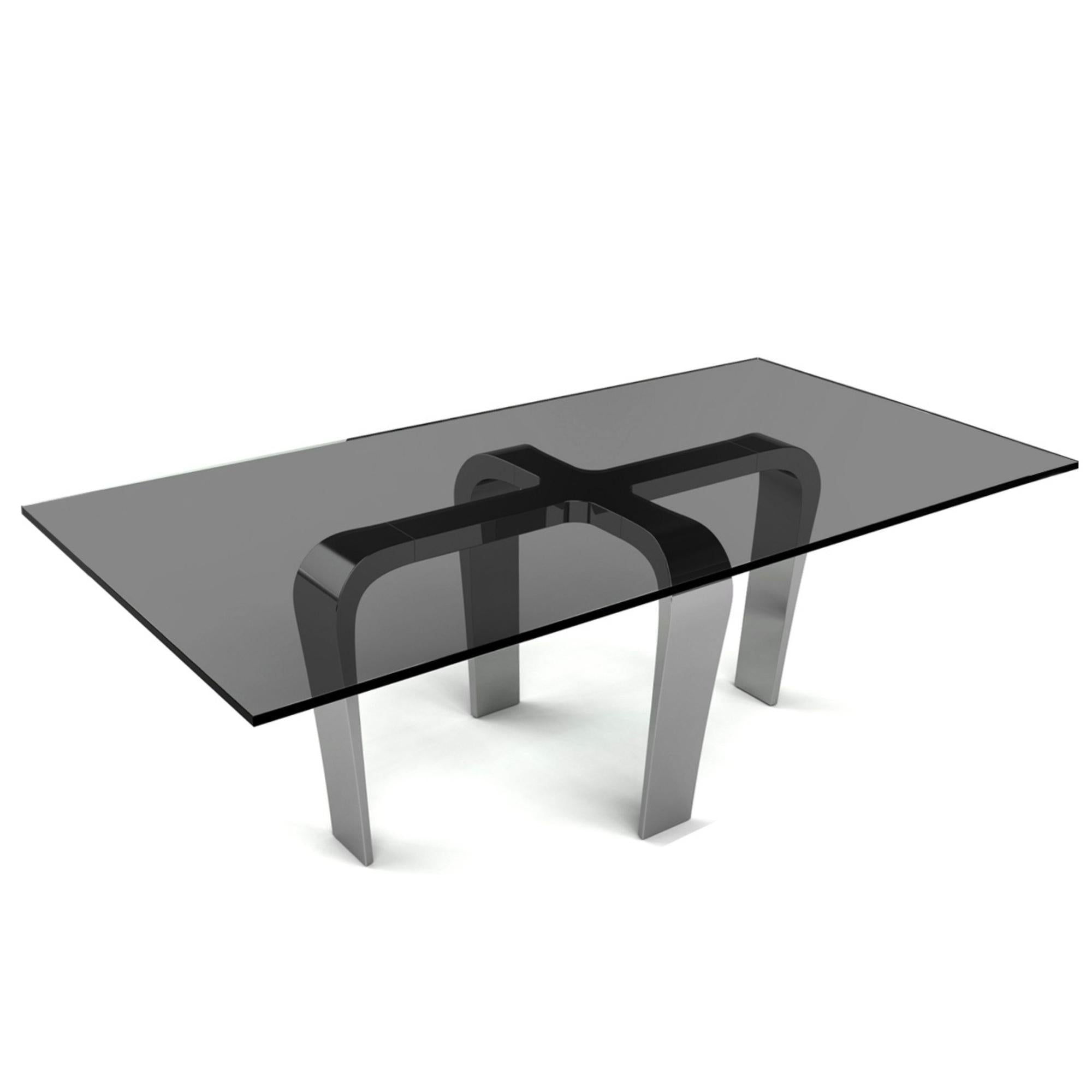 The Cirrus Rectangular Dining Table is available in both clear and smoked glass, and is also offered in a round version for those who prefer a softer silhouette.