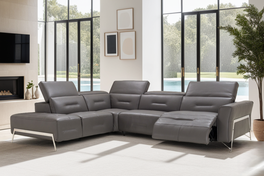 The Enzo Sectional is designed for those who want luxury without sacrificing functionality. With its generous footprint and clean-lined frame, Enzo exudes modern design, and is as ready for a family movie night as it is for hosting friends. Its full‑grain Italian leather cover offers a rich tactile experience, while two power recliners and adjustable headrests ensure tailored relaxation in every seat. Proudly crafted in Italy, the Enzo blends functional excellence with sophisticated style and impressive scale.