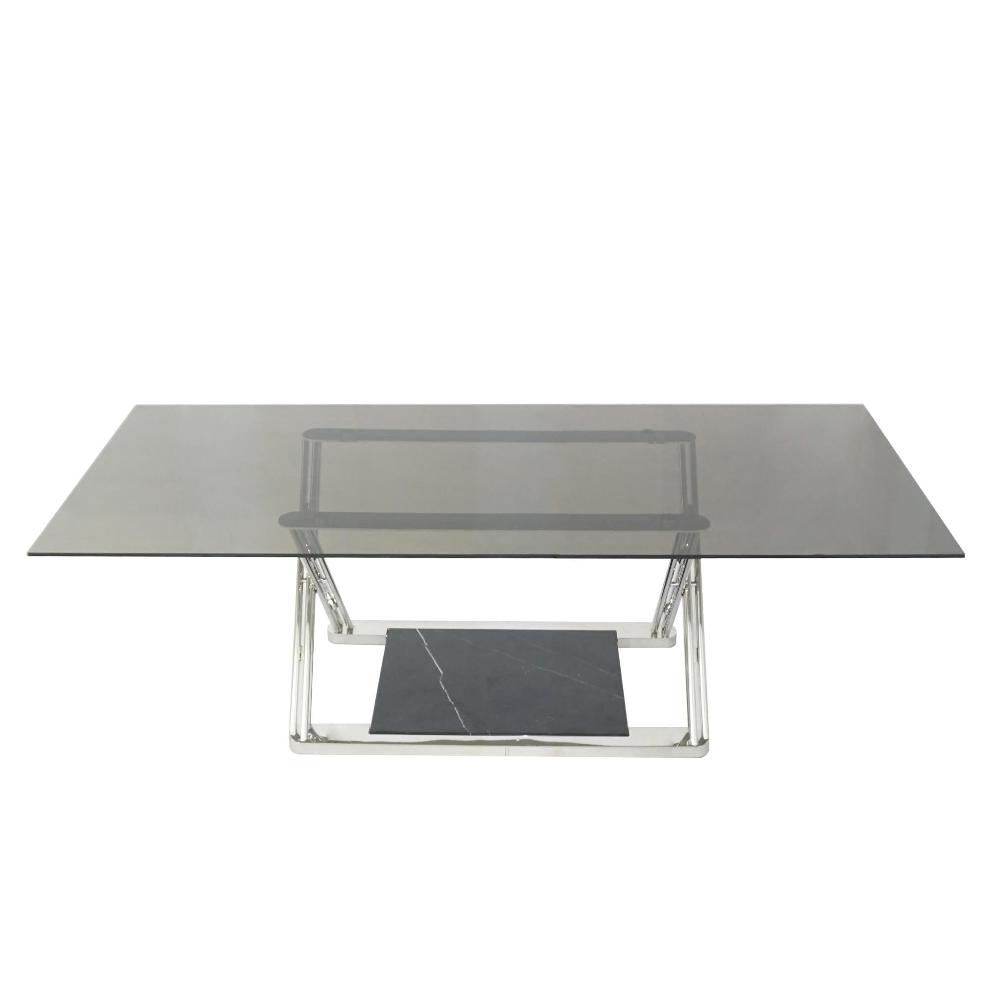 The Gatsby Dining Table brings refined modern elegance to any dining space with a dramatic combination of smoked glass, polished metal, and natural marble. Its 12mm Smoked Glass top provides a deep, moody surface that reflects light softly and sets a sophisticated tone. Beneath it, a polished stainless steel frame and a Black and White Natural Marble base create a sculptural foundation that feels both luxurious and architectural.