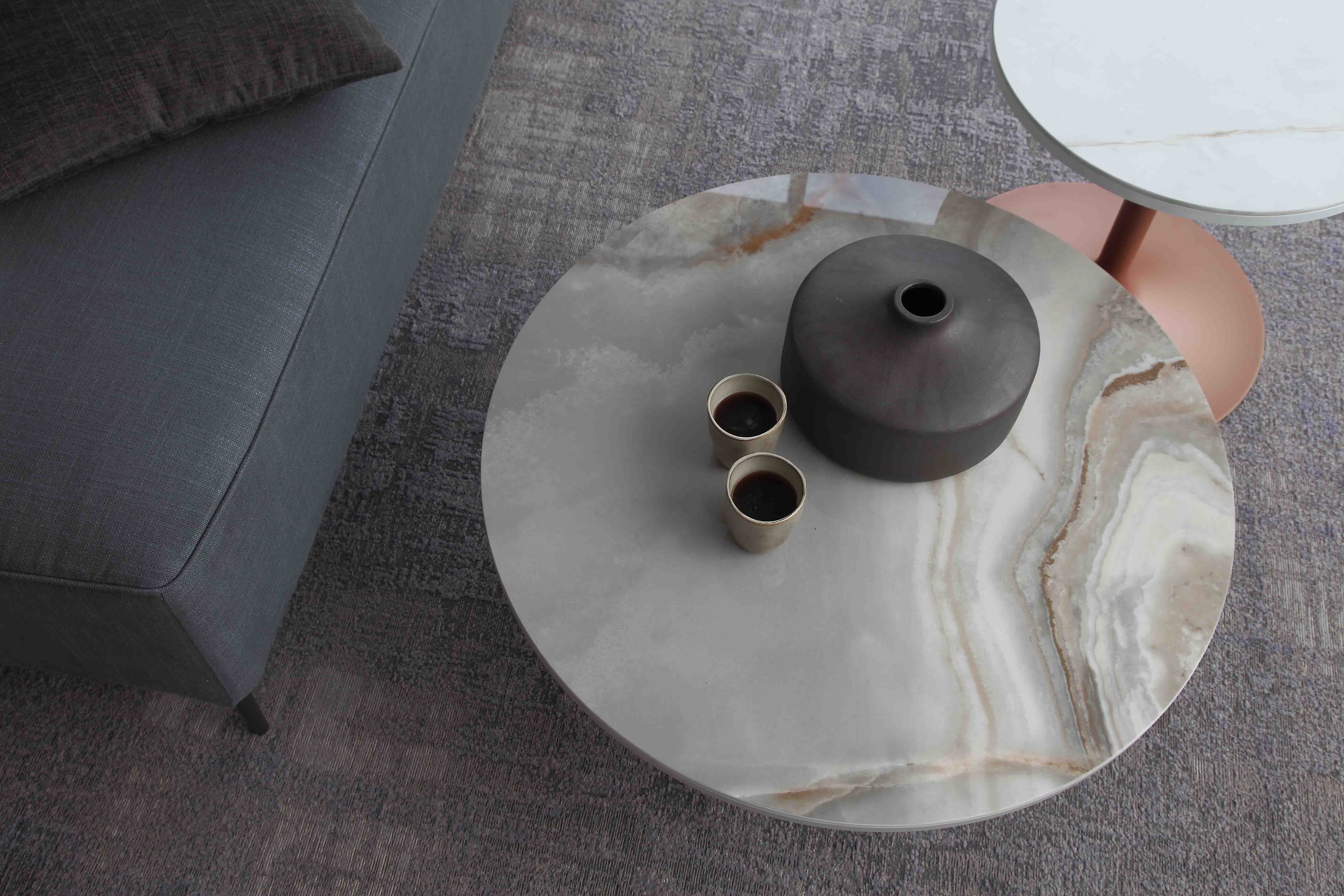 This contemporary coffee table combines timeless elegance with a versatile design, making it a sophisticated addition to any living space. Featuring a goblet-shaped base crafted from the highest quality metal, these nesting tables exude strength and style. The base is available in three elegant finishes: Anthracite, Silver, and Copper, allowing you to customize the table to suit your aesthetic preferences.