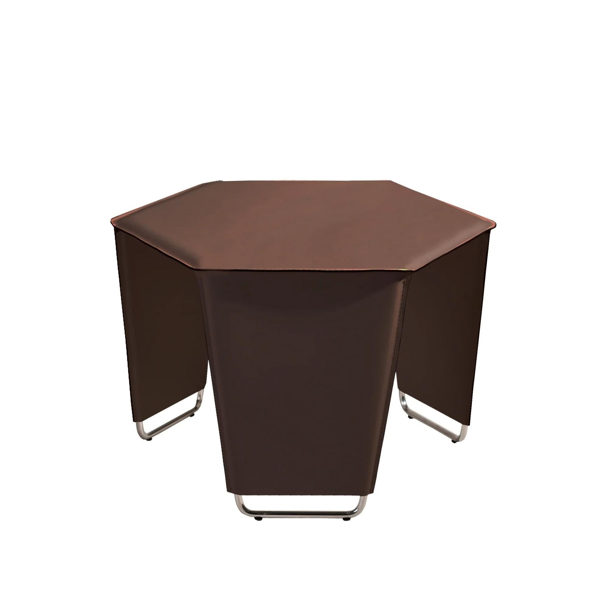 The Movado End Table in elegant brown brings quiet sophistication to your living space, with a soft neutral tone that blends seamlessly into layered interiors yet still stands out through refined detailing. Its brown recycled leather upholstery gives the piece depth and elegance, while the steel base and chrome frame let its material quality shine.