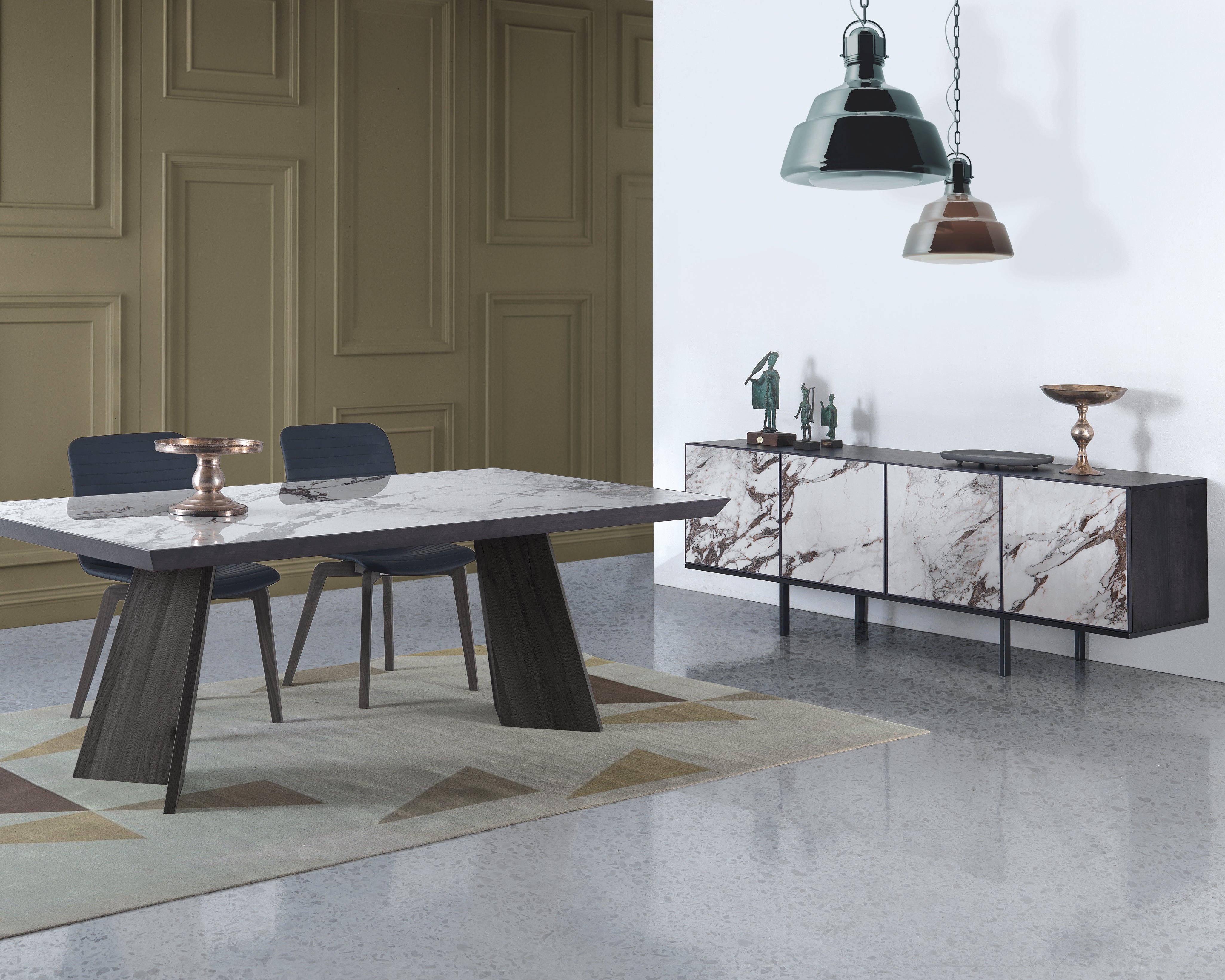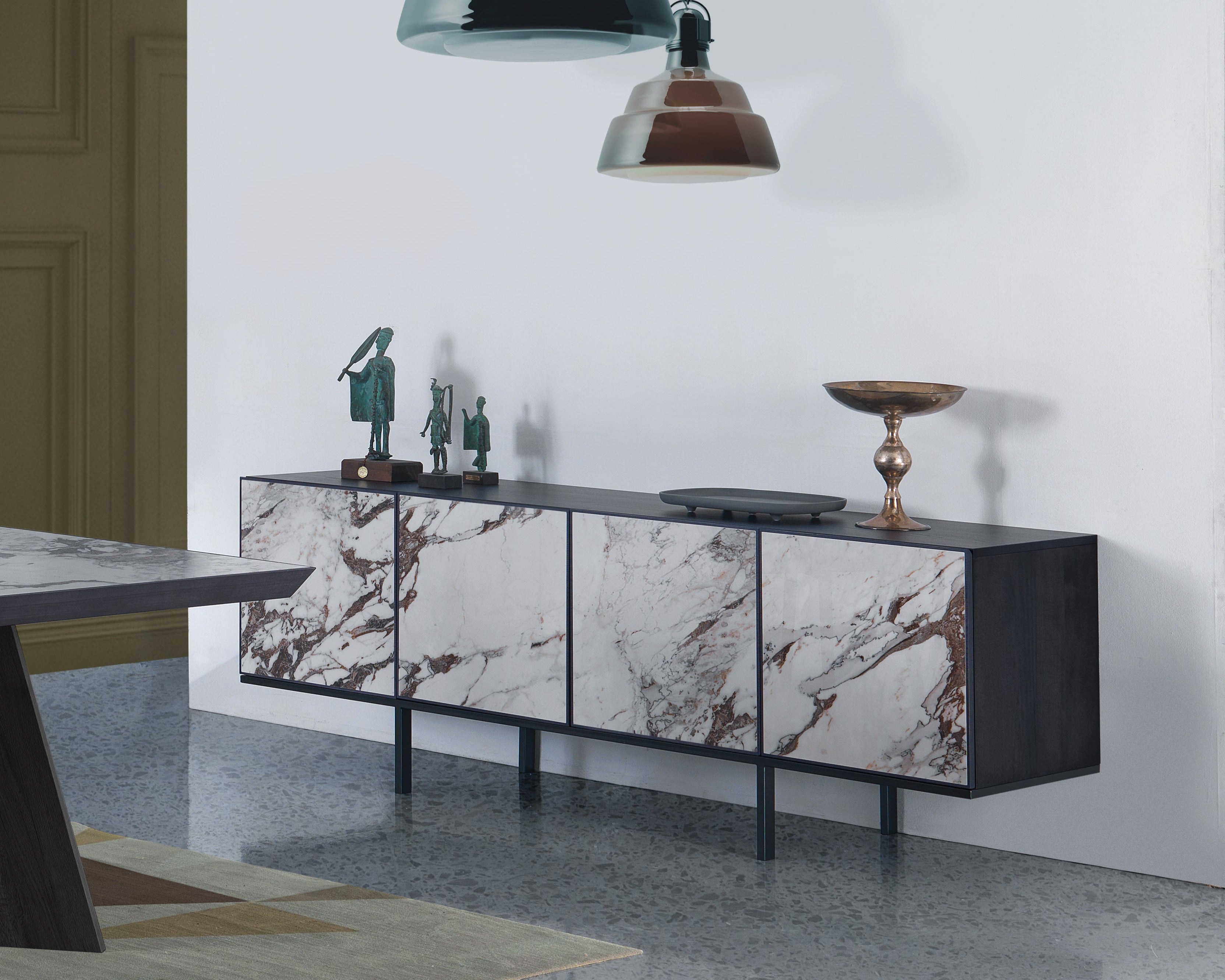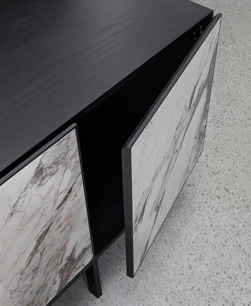 Ombre Sideboard, available in Golden White and Black Gray. This elegant sideboard features an Ash Wood body with four stunning ceramic doors and Anthracite Grey legs. Made in Italy.