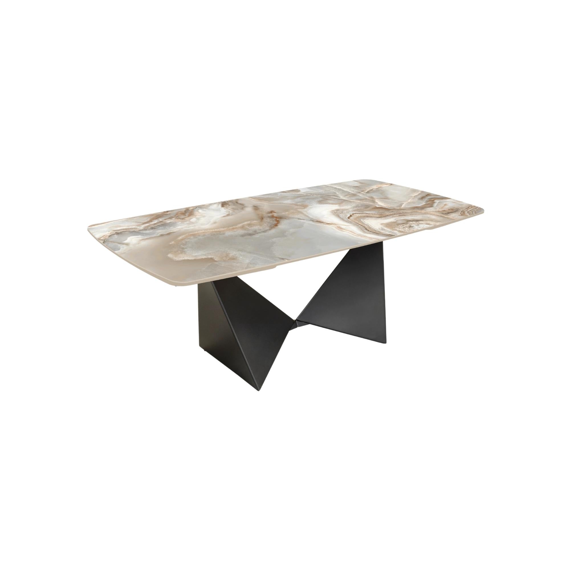 The ceramic top, available in elegant finishes like Calacatta White Matte, Calacatta Black, Onice Beige, and Patagonia, adds both sophistication and durability. For added versatility, the table is also available with an extendable top, effortlessly expanding to accommodate larger gatherings.