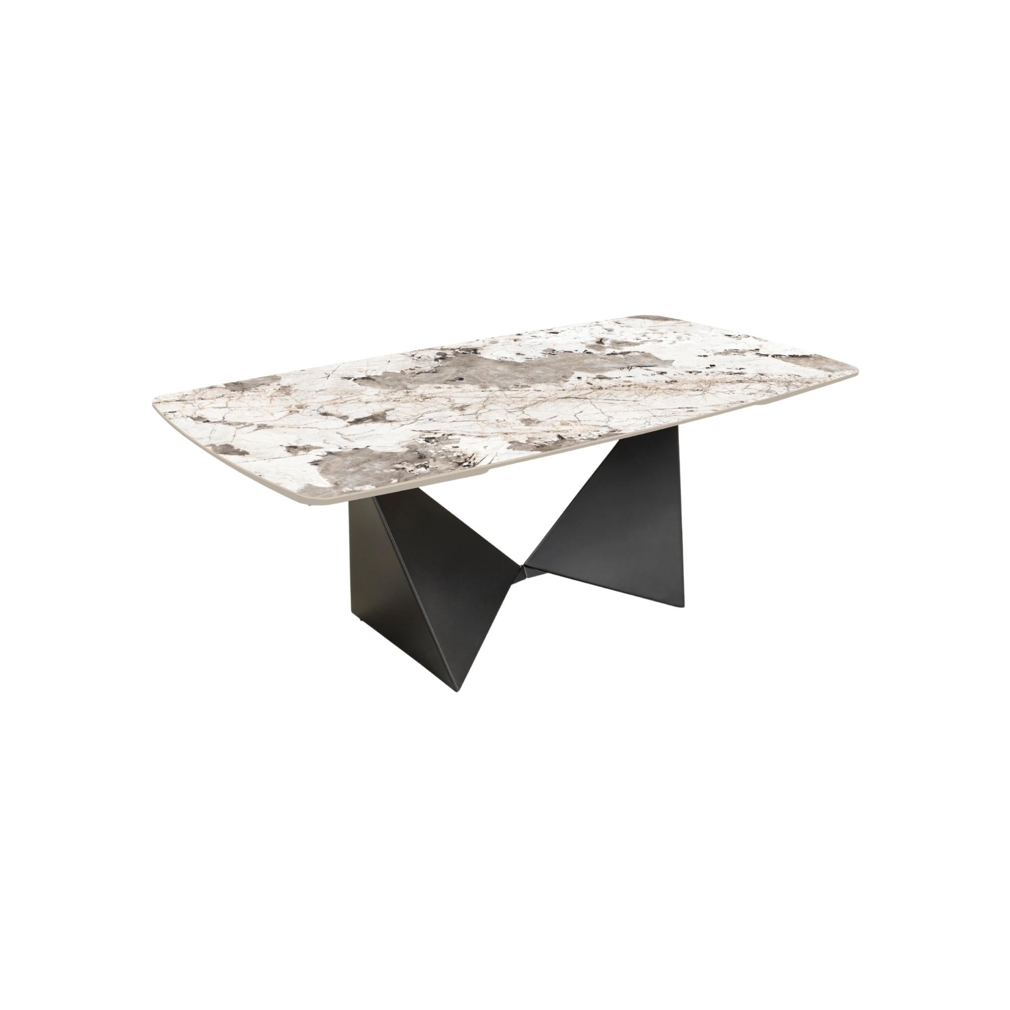 The Origami Dining Table is a striking blend of contemporary design and functionality, inspired by the art of folding. Its geometric anthracite metal base creates a bold visual statement while ensuring exceptional stability.