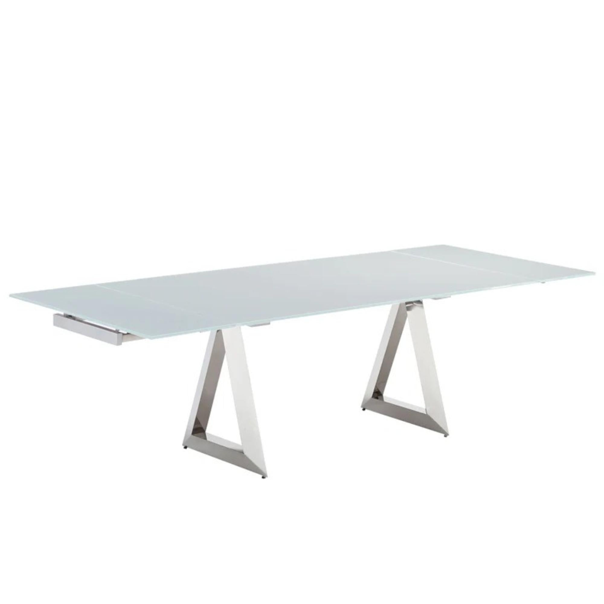 Striking yet refined, the Pesaro Dining Table brings a sense of luminous clarity and contemporary elegance to the dining space. The 12mm tempered glass top allows your chosen color to shine while keeping the surface smooth and easy to care for. Beneath, legs with a stainless steel mirrored finish reflect light and surroundings, adding a subtle sense of depth and refinement without feeling heavy.