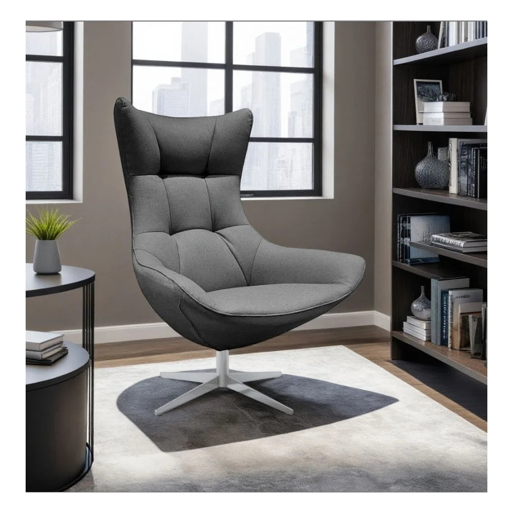 The Rocky Swivel Chair combines bold design with modern versatility, creating a statement piece that instantly elevates any room. Available in your choice of dark gray, light gray, or red, its clean lines and contemporary silhouette make it ideal for living spaces, offices, or lounge areas. The smooth swivel function adds flexibility, allowing you to turn with ease and stay engaged in conversations from any angle.