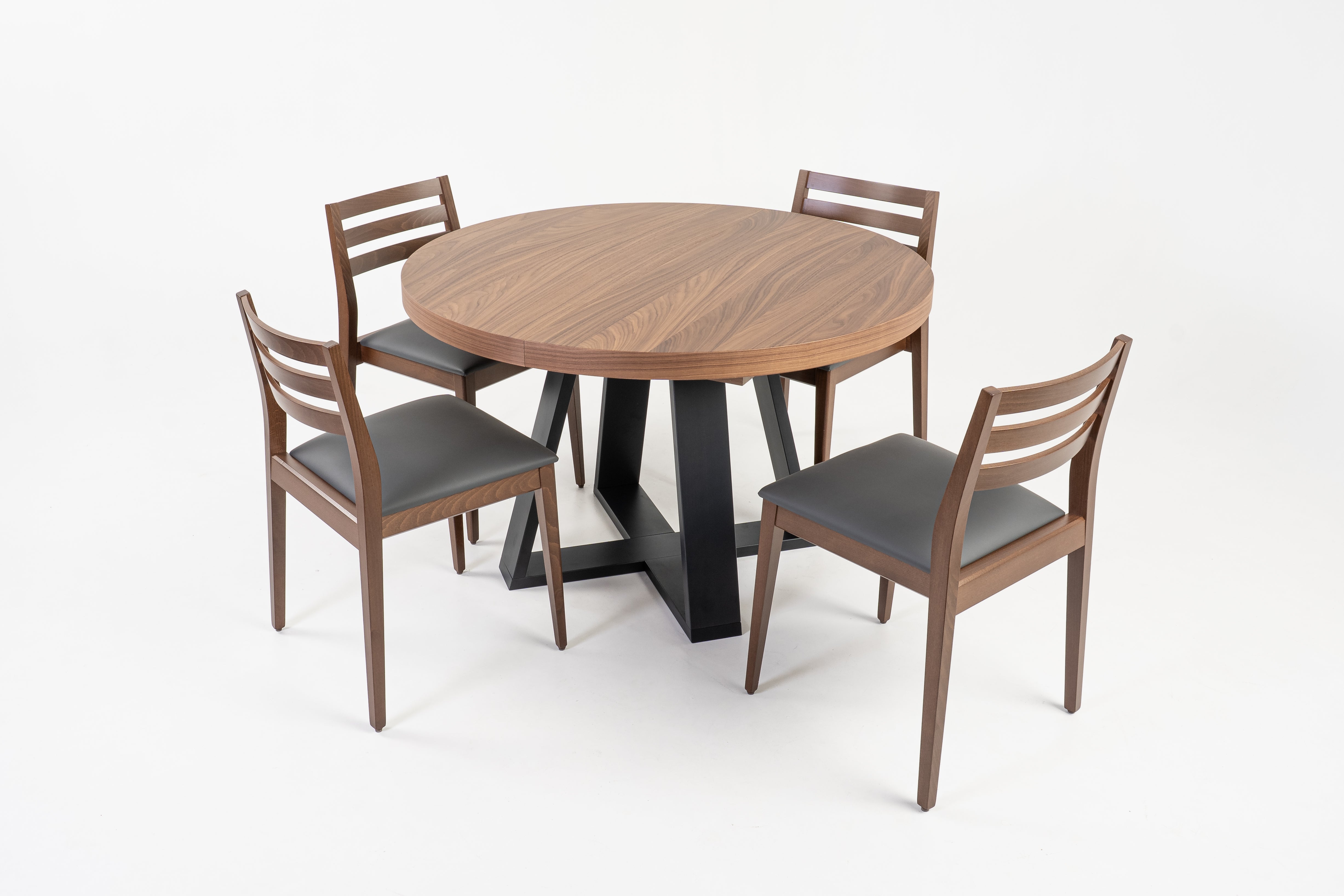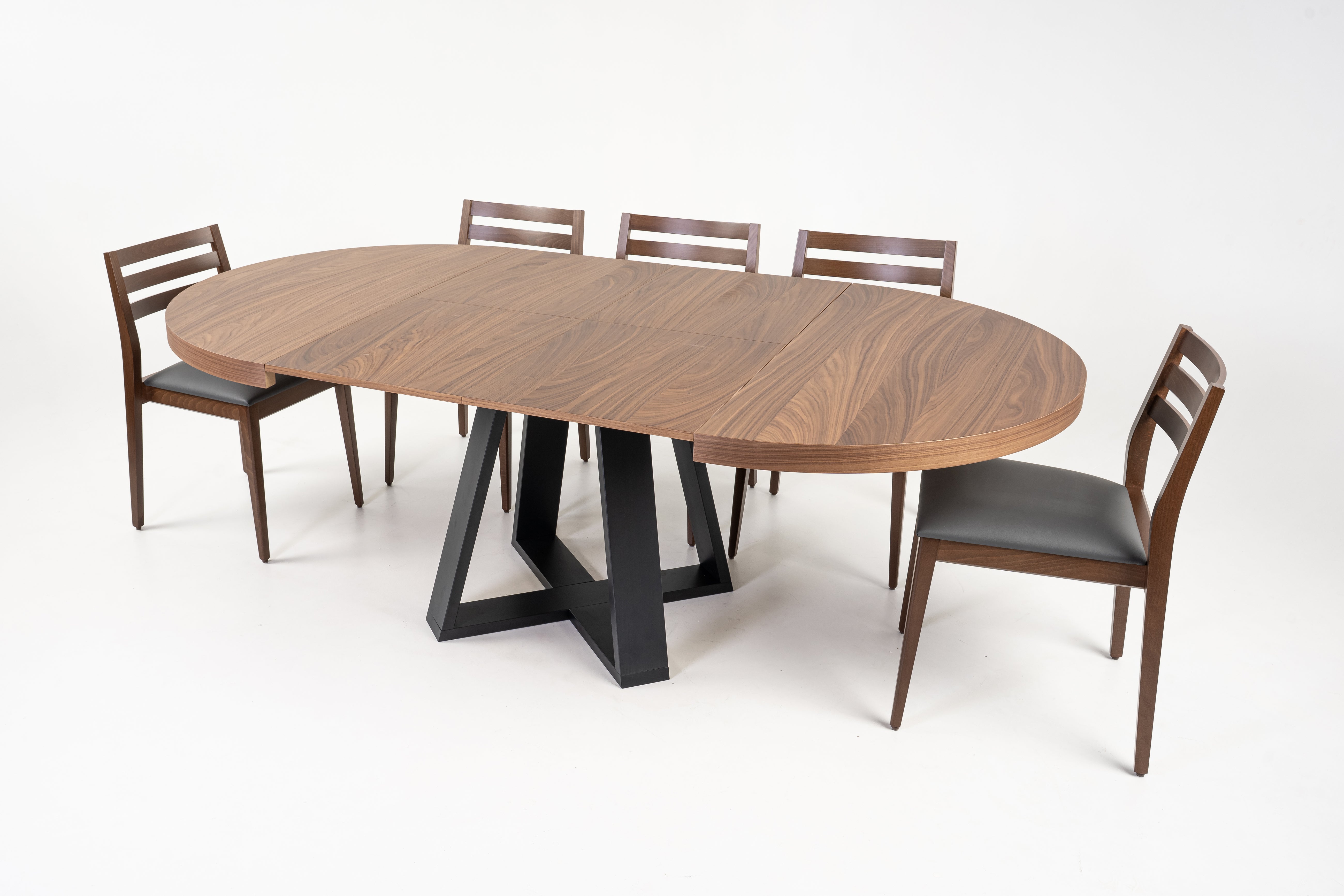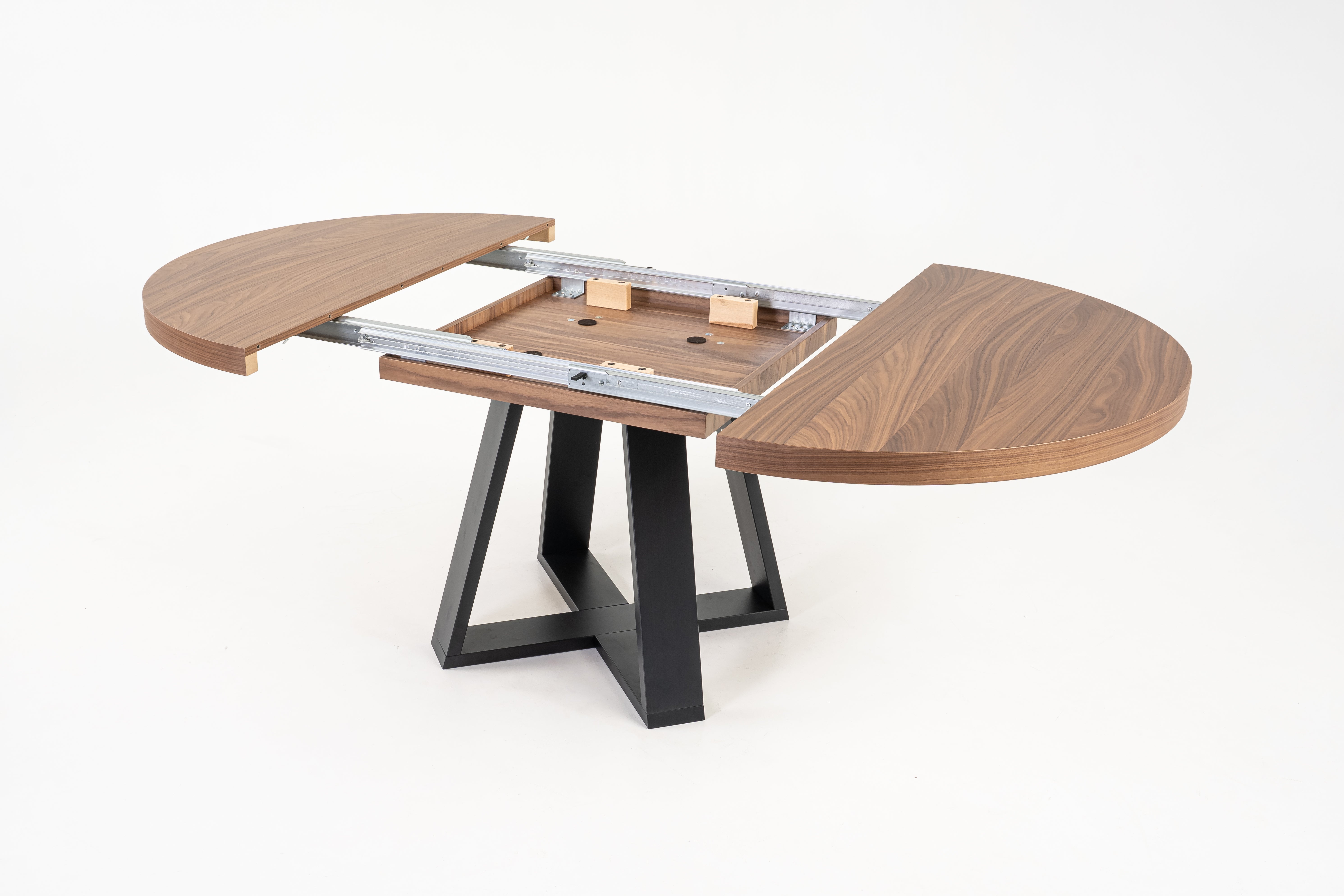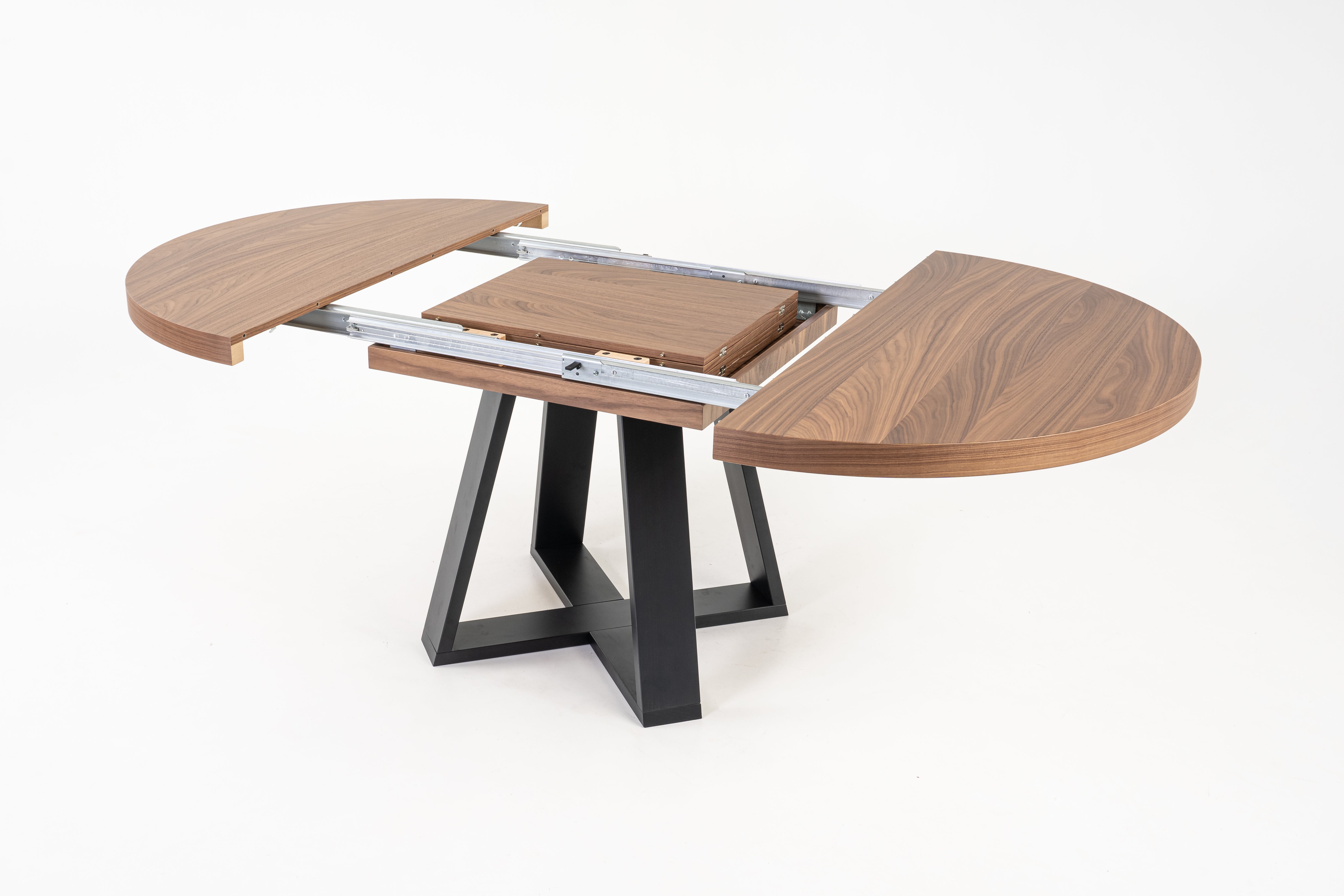 Expertly crafted with a walnut veneer top, the Scala Extension Dining Table offers a stylish and functional solution for your dining needs. With its butterfly extensions and telescopic system, you can easily extend the table from 47 inches to 85 inches, perfect for accommodating larger gatherings.