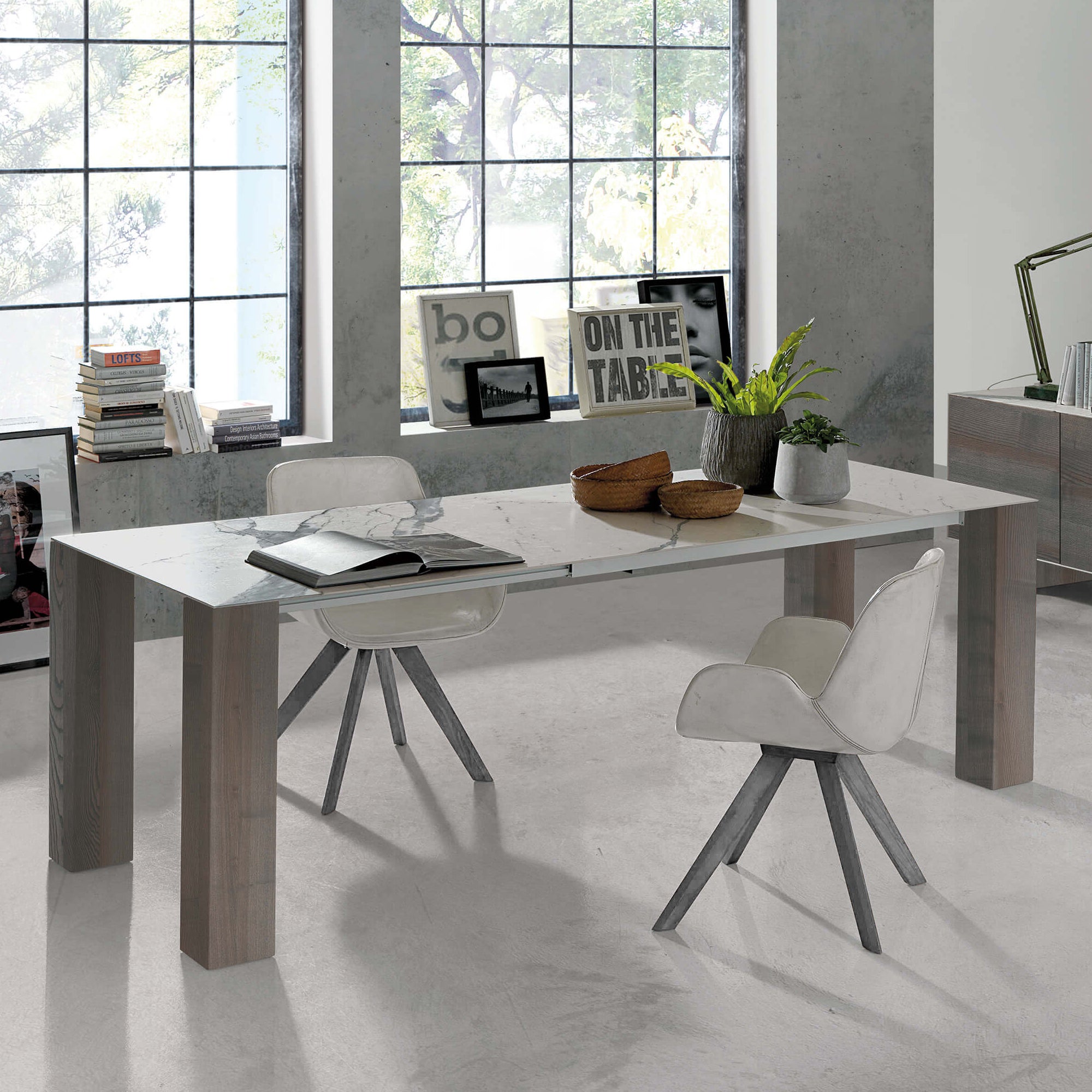 The Thin Extension Dining Table combines clean lines with a striking design, offering a high-style look and an easy-going attitude. The ceramic surface provides unique visual texture, while the grey ash finish maintains a sleek, contemporary aesthetic. Perfect for accommodating more guests or entrees, this table pairs beautifully with the Thin Sideboard to enhance any living space.